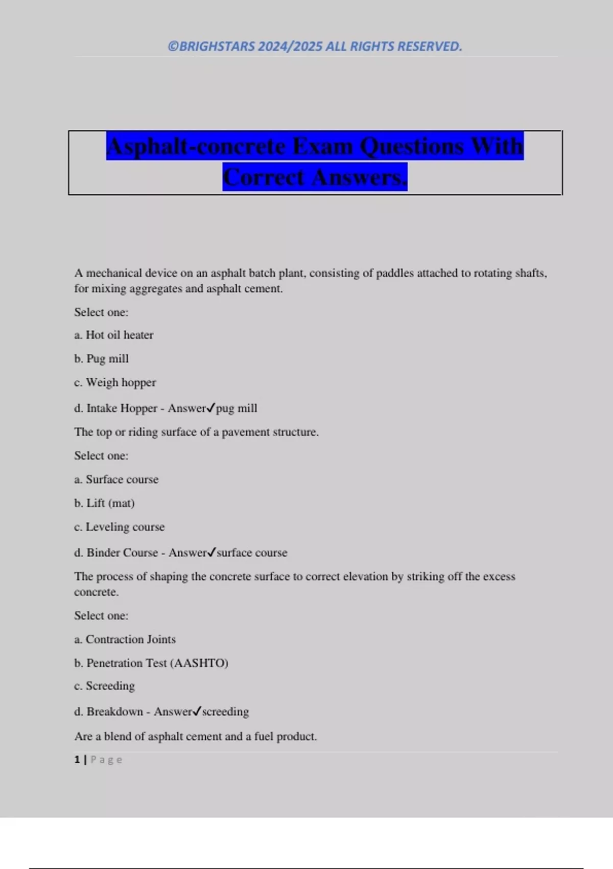 Asphalt-concrete Exam Questions With