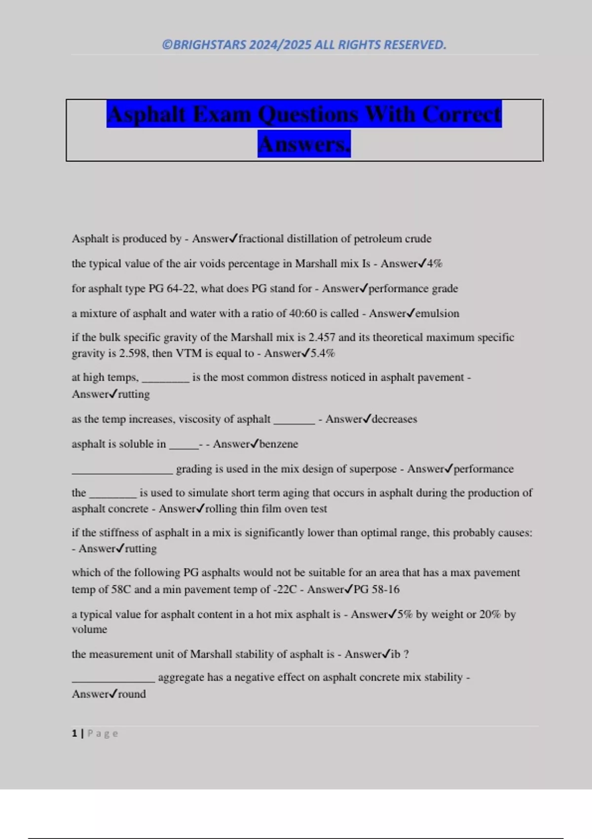Asphalt is produced by - Answer✔fractional distillation of petroleum crude