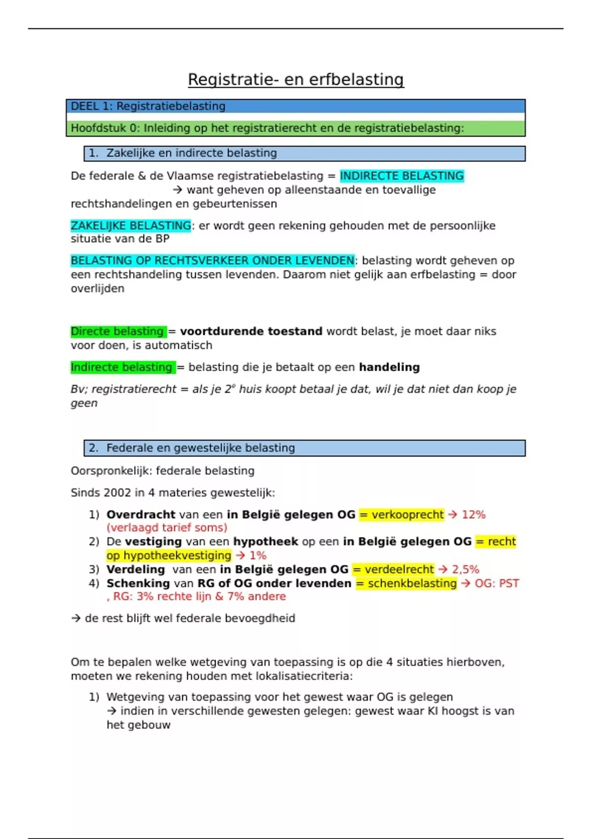 Samenvatting erfbelasting en registratierecht - VIVES (17/20)