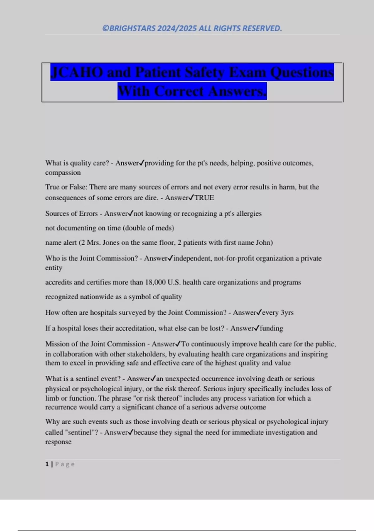 JCAHO and Patient Safety Exam Questions