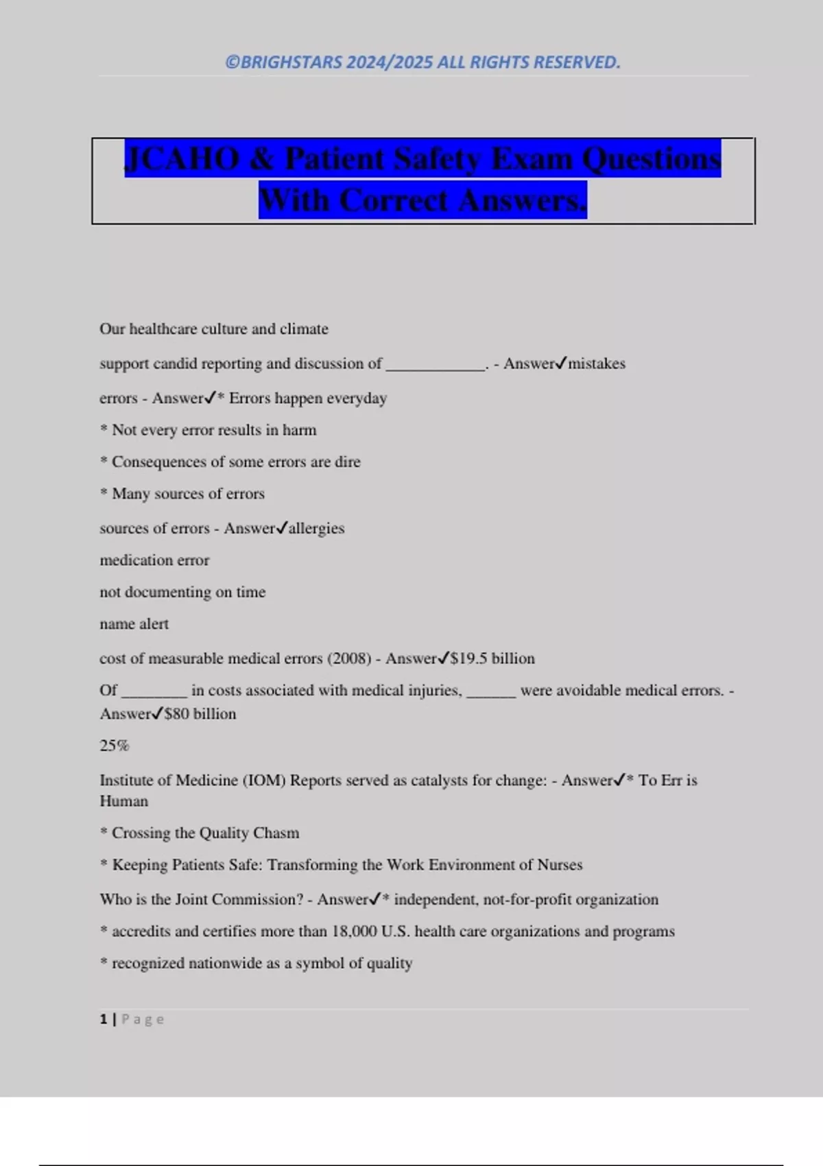 National Patient Safety Goals - Answer✔* Annually Joint Commission establishes a list of