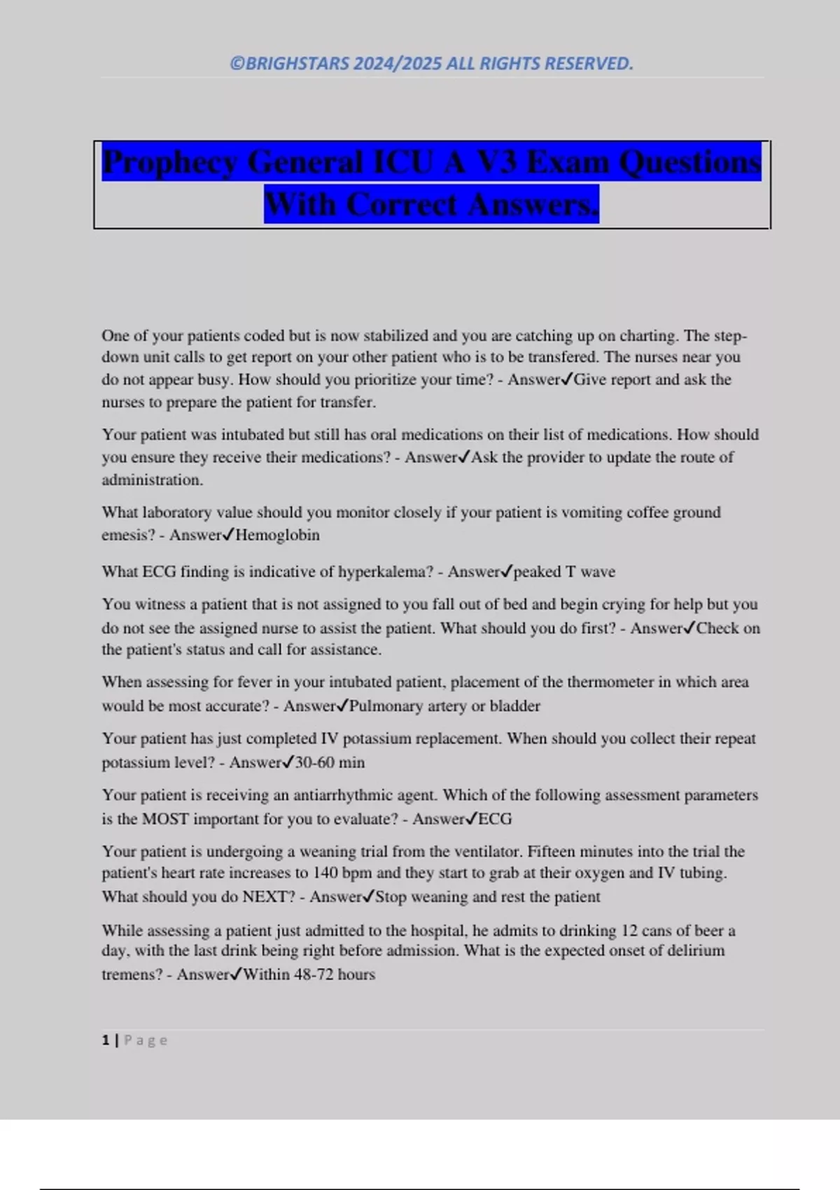 Prophecy General ICU A V3 Exam Questions