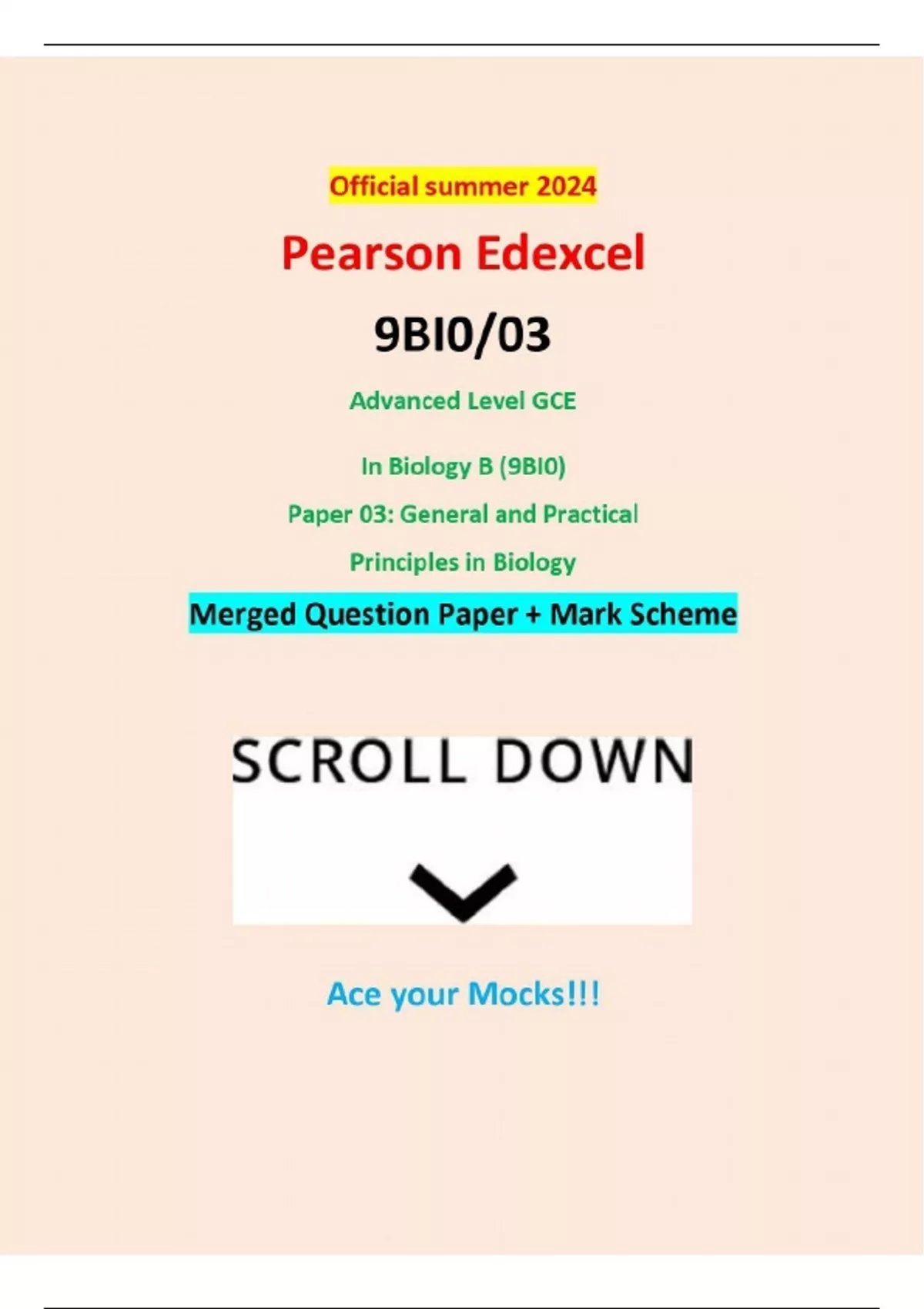 - Official summer 2024 Pearson Edexcel 9BI0/03 Advan