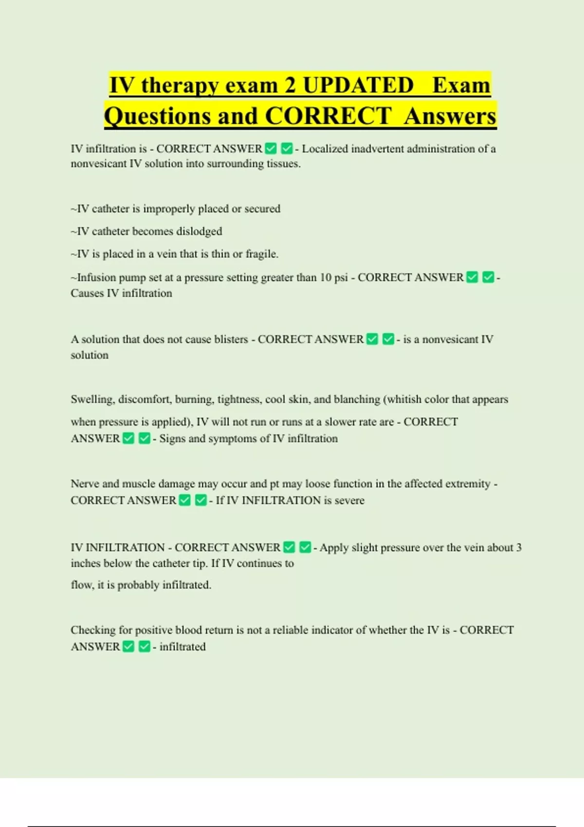What do I do if an IV is infiltrated? - CORRECT ANSWER - • Stop the infusion
