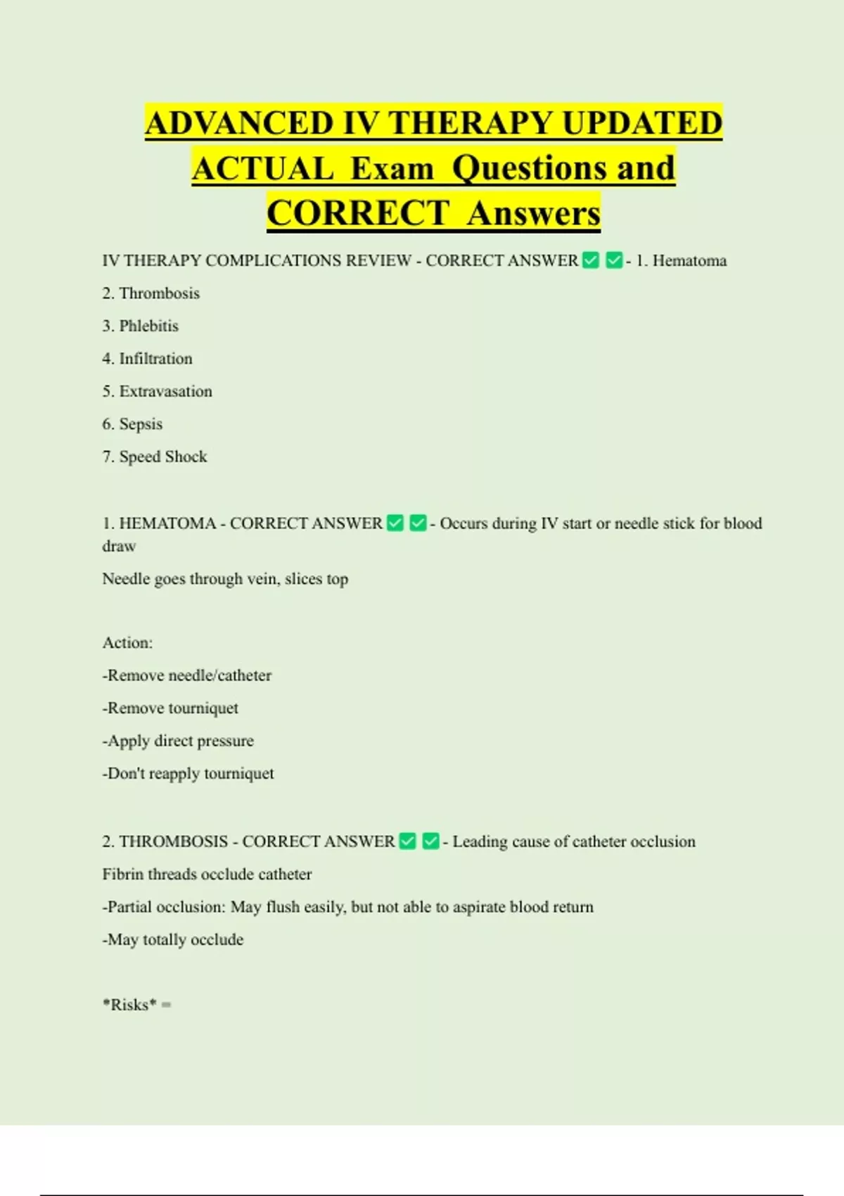 IV THERAPY COMPLICATIONS REVIEW - CORRECT ANSWER - 1. Hematoma