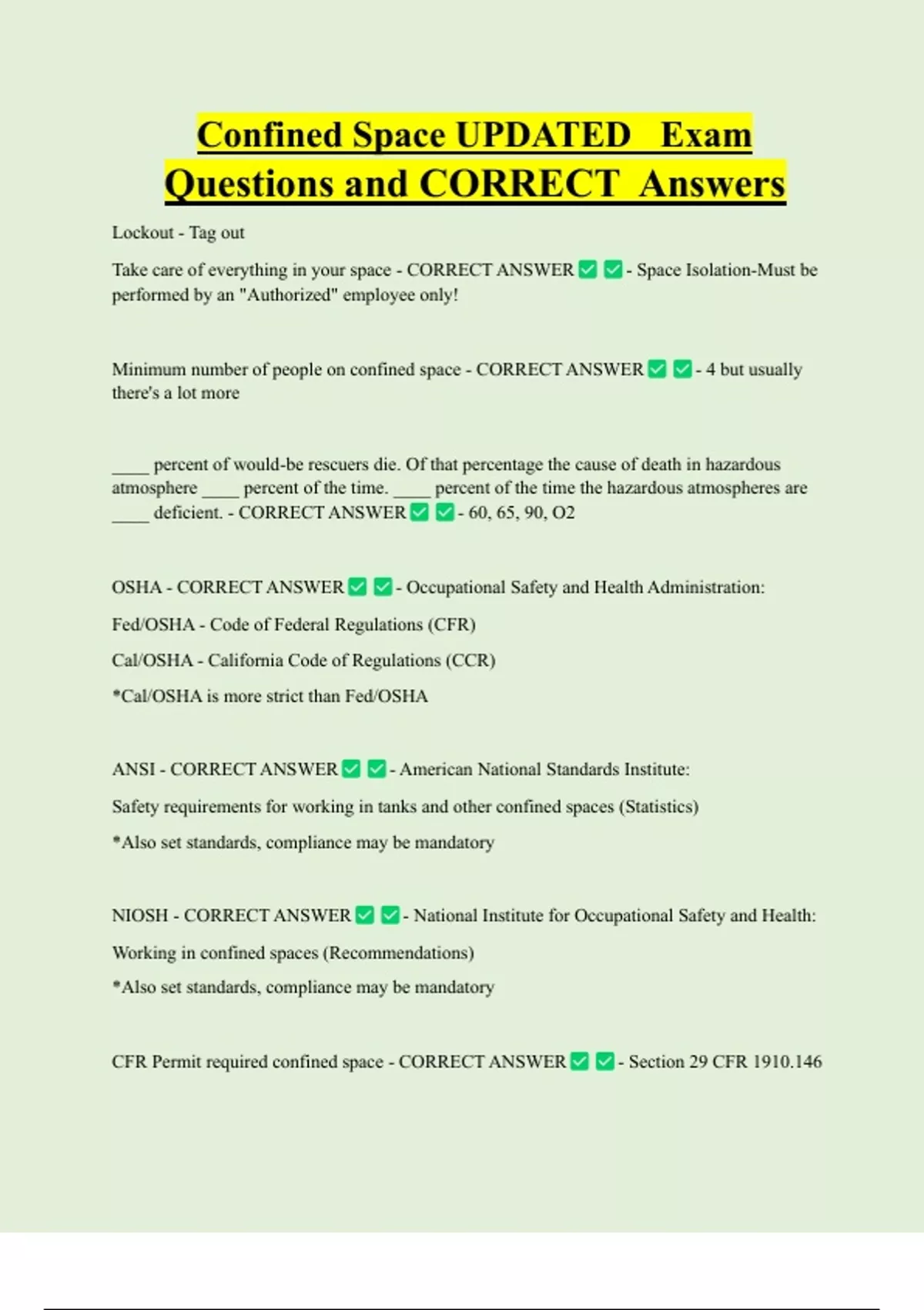CFR Permit required confined space - CORRECT ANSWER - Section 29 CFR 1910.146