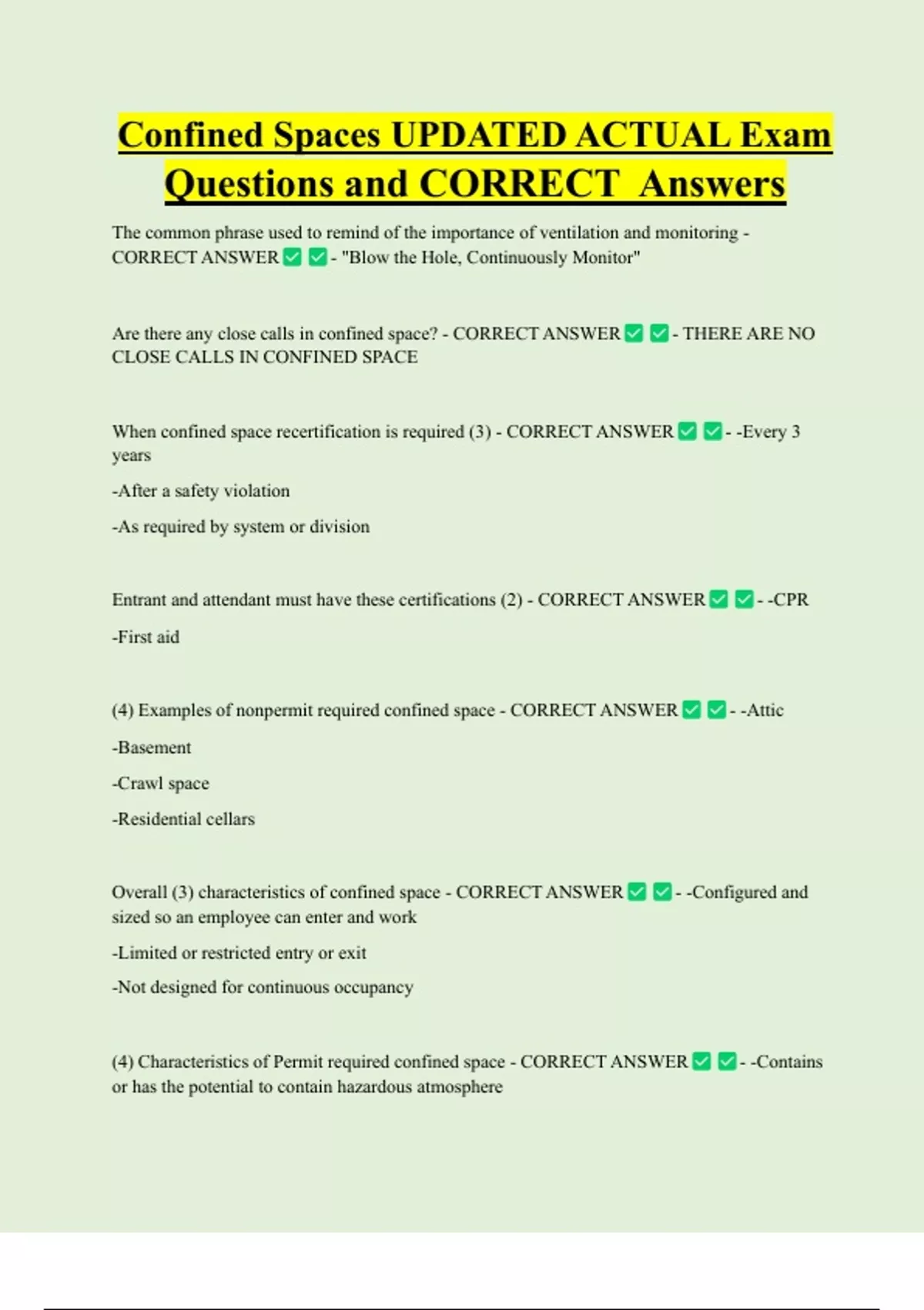 Confined Spaces UPDATED ACTUAL Exam Questions and CORRECT Answers