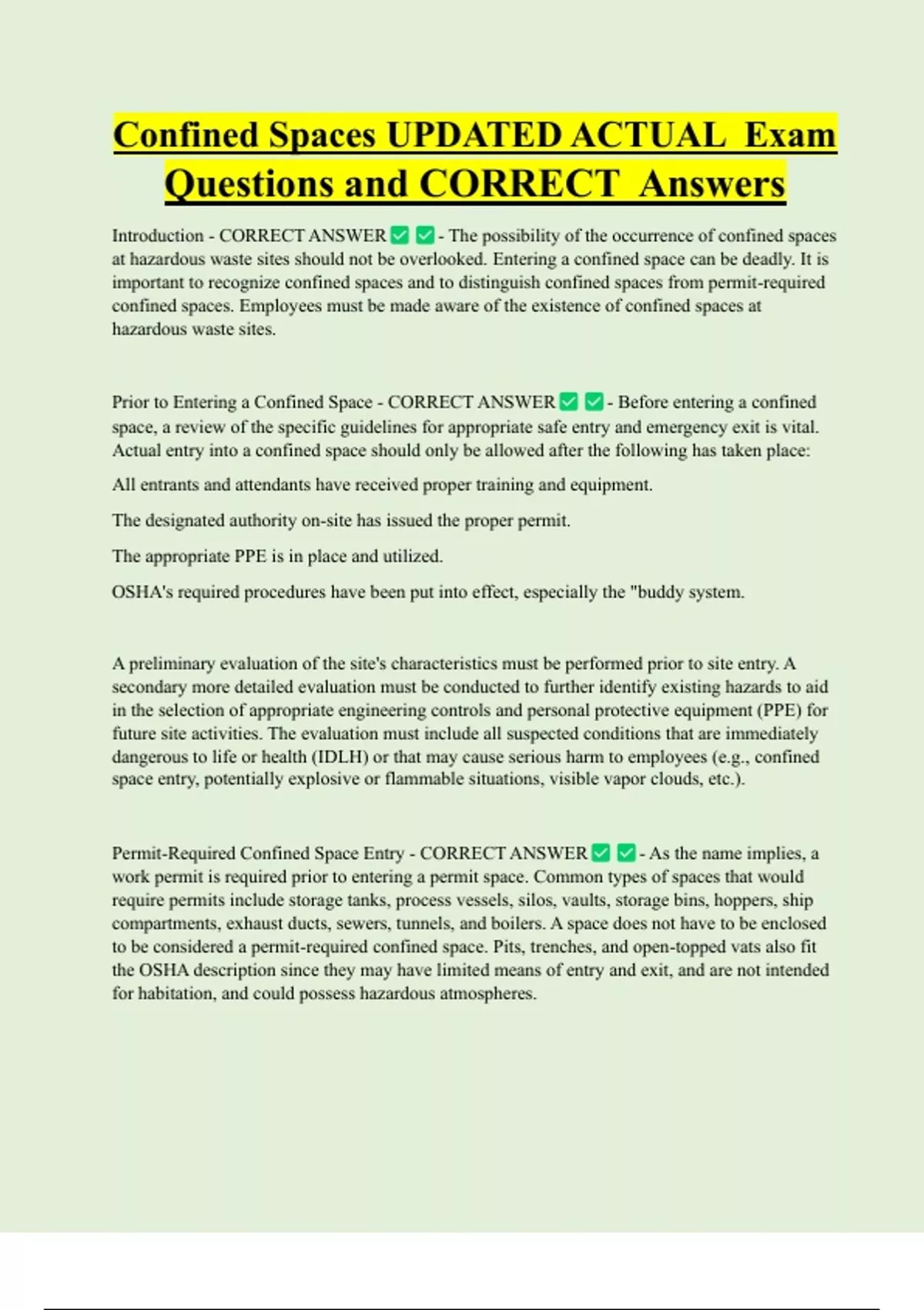Permit-Required Confined Space Entry - CORRECT ANSWER - As the name implies, a