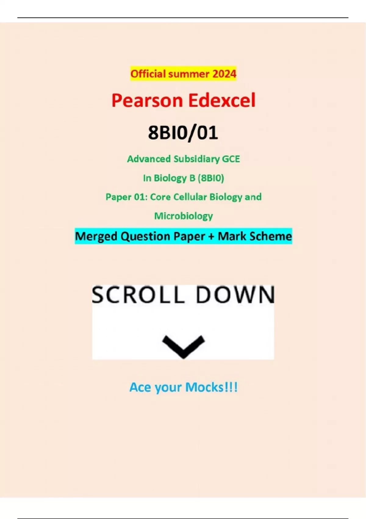 - Official summer 2024 Pearson Edexcel 8BI0/01 Advan
