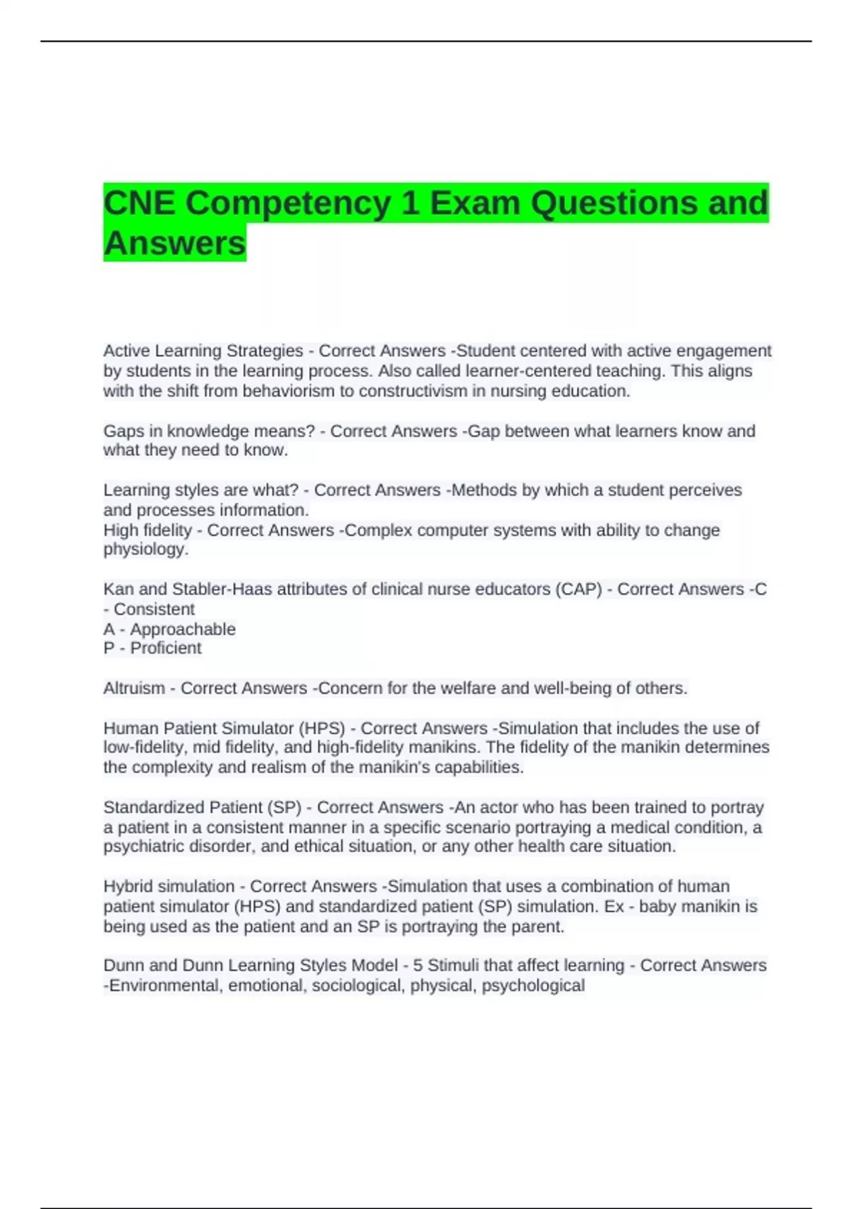 Kan and Stabler-Haas attributes of clinical nurse educators (CAP) - Correct Answers -C