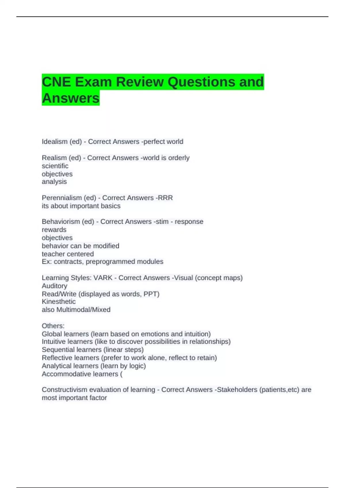 CNE Exam Review Questions and
