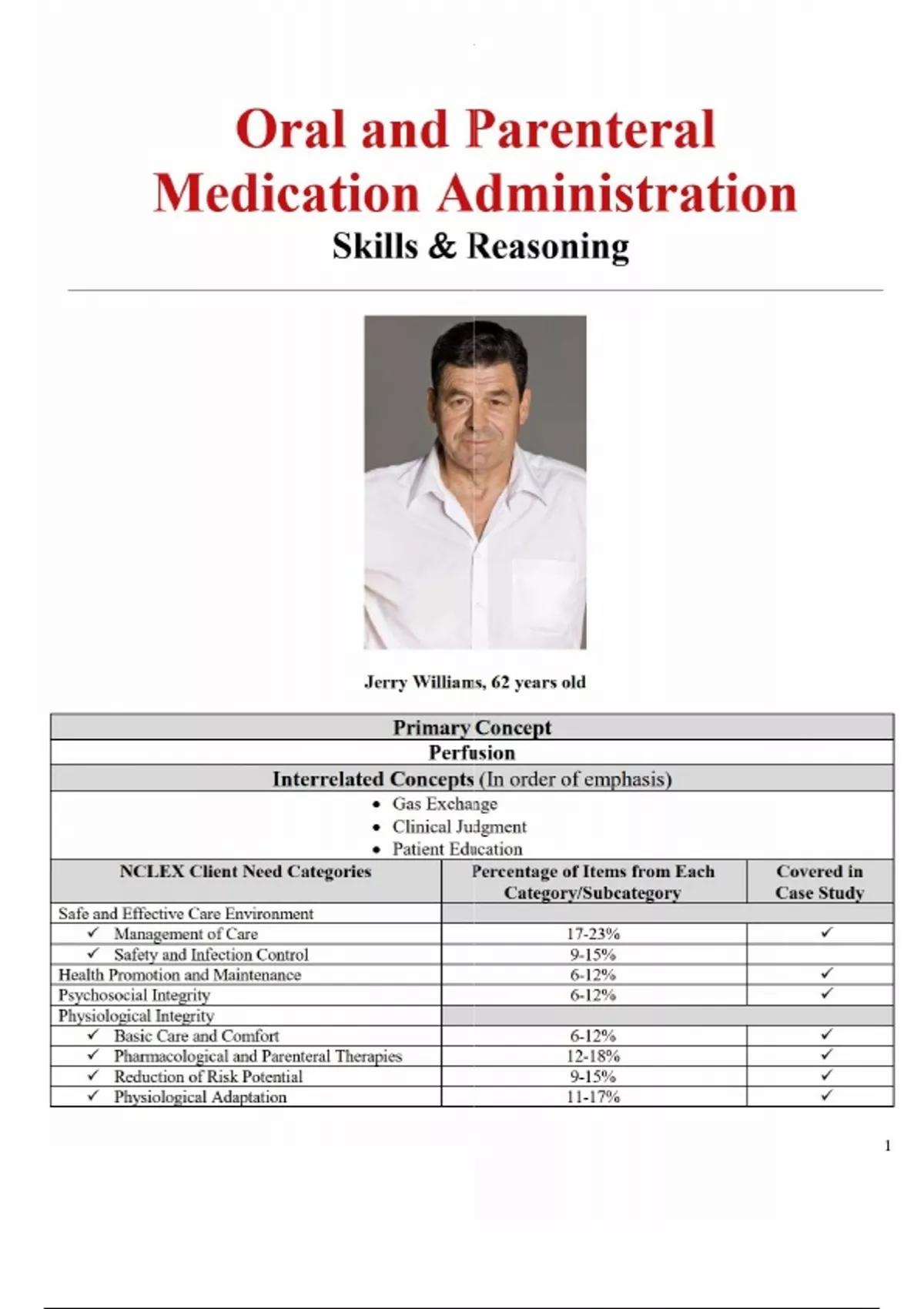 Master Case Study: Oral and Parenteral Medication Administration with Skills & Reasoning for Jerry Williams, 62
