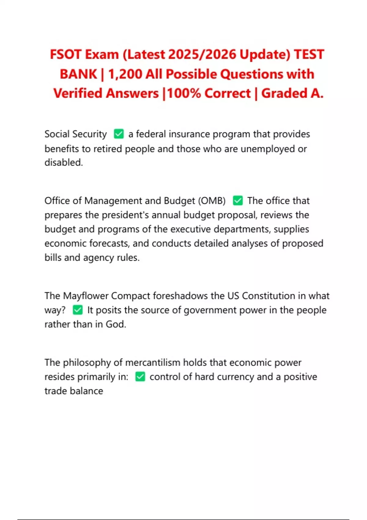 FSOT Exam (Latest 2025/2026 Update) TEST BANK | 1,200 All Possible Questions with Verified Answers |100% Correct | Graded A.