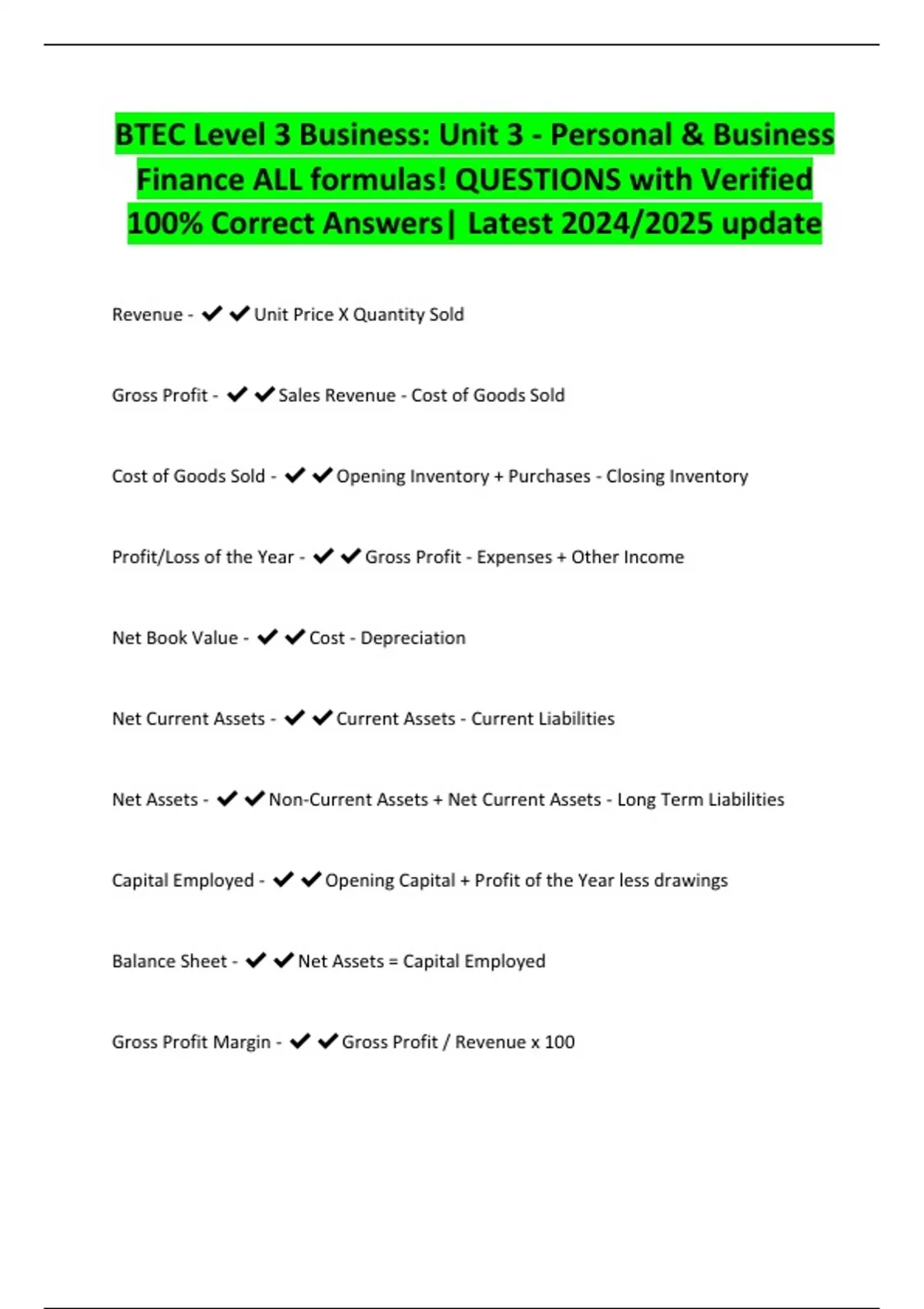 BTEC Level 3 Business: Unit 3 - Personal & Business