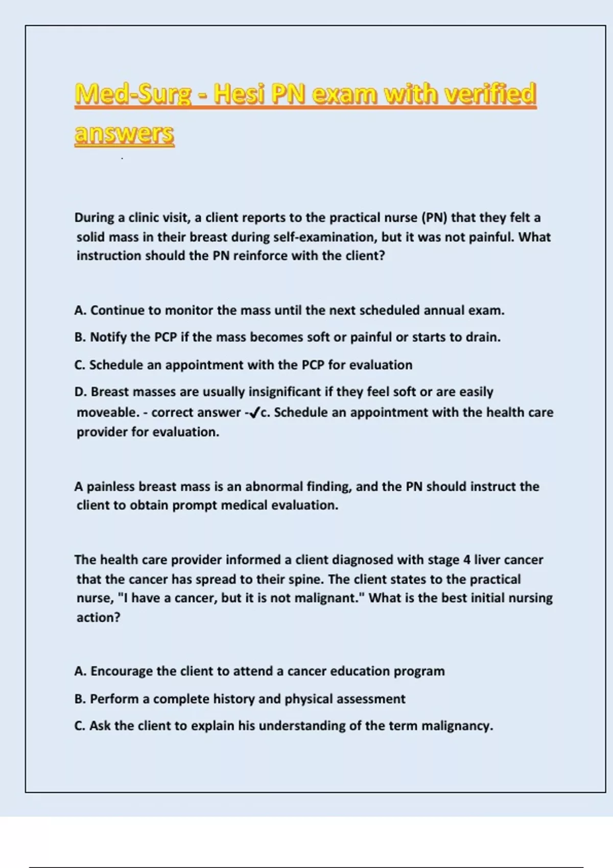 Med-Surg - Hesi PN exam with verified answers
