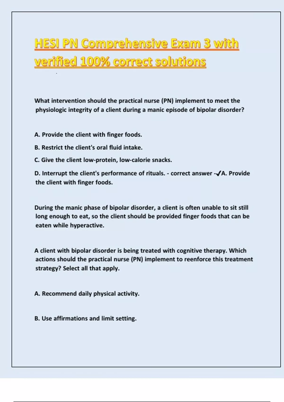 HESI PN Comprehensive Exam 3 with verified 100% correct solutions