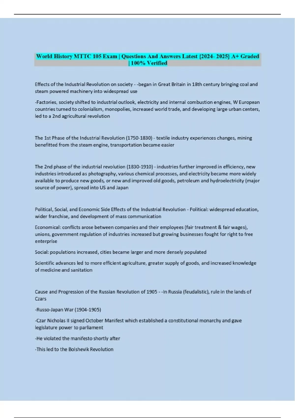 world history mttc 105 exam questions and answer