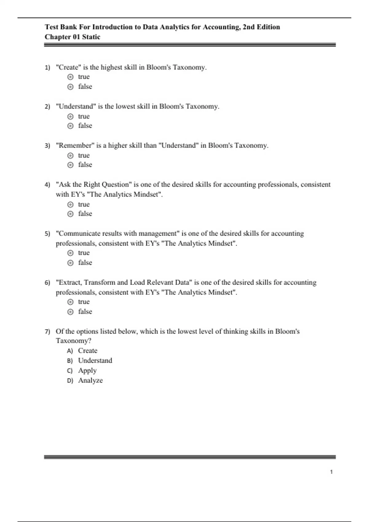 Test Bank For Introduction to Data Analytics for Accounting, 2nd Edition