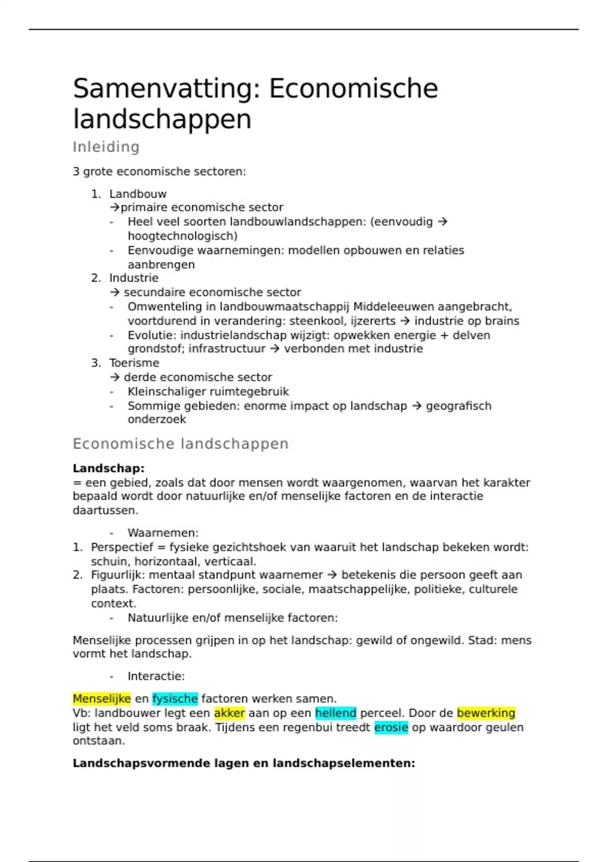 Samenvatting Economische landschappen 1