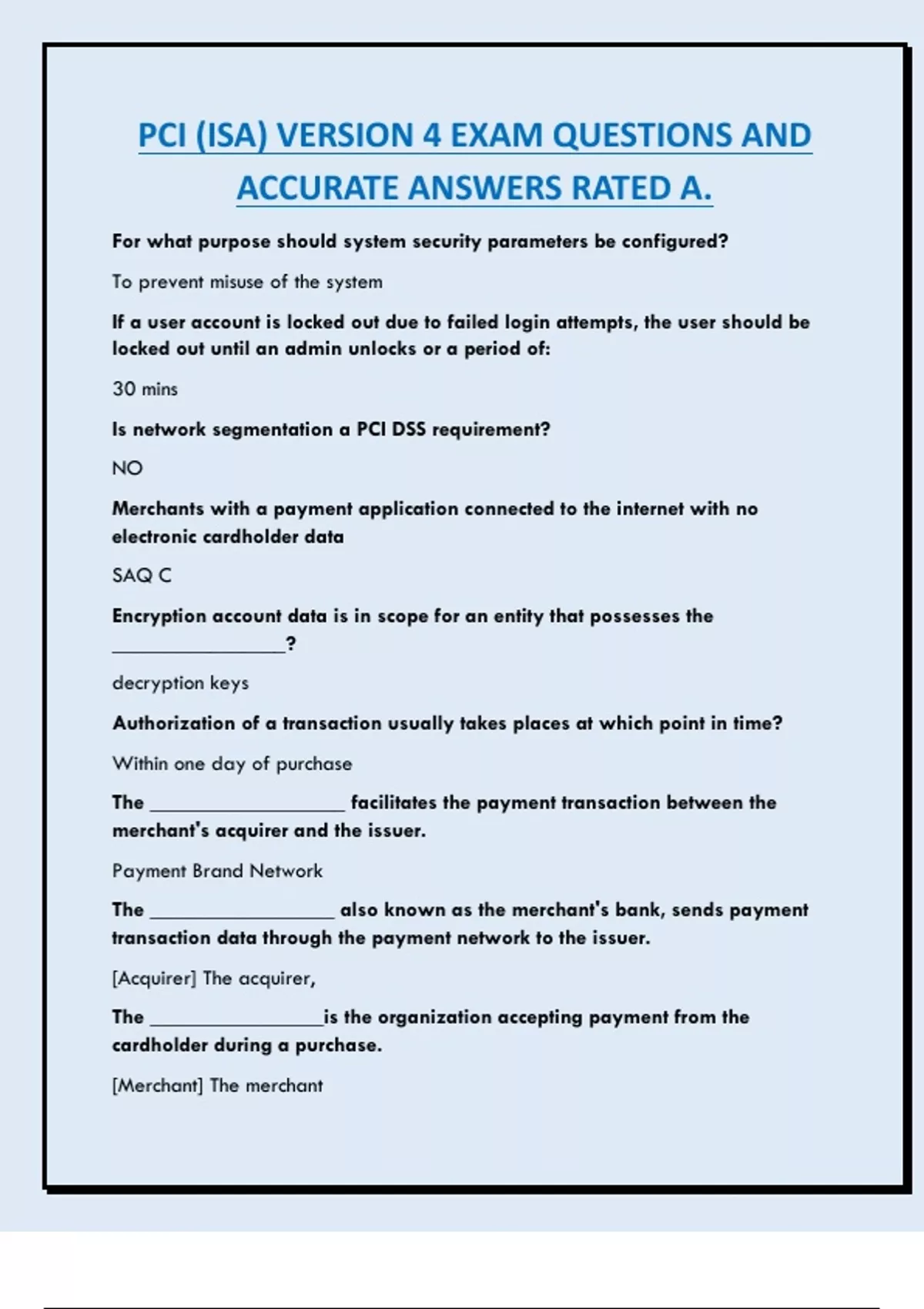 PCI (ISA) VERSION 4 EXAM QUESTIONS AND