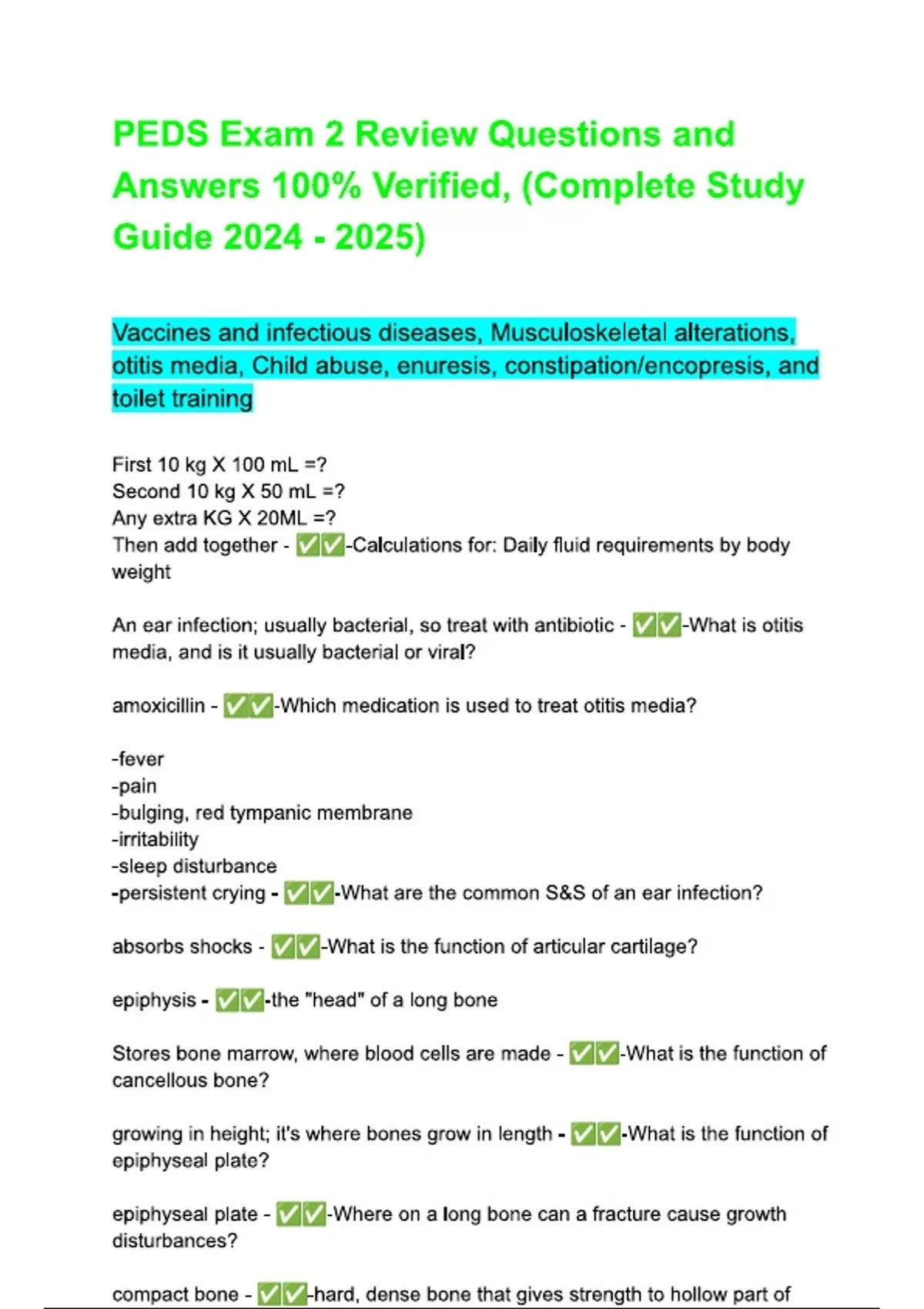 PEDS Exam 2 ( Latest 2024 / 2025 Update) Actual Questions and Answers |100% Verified Correct | 100% satisfaction guarantee