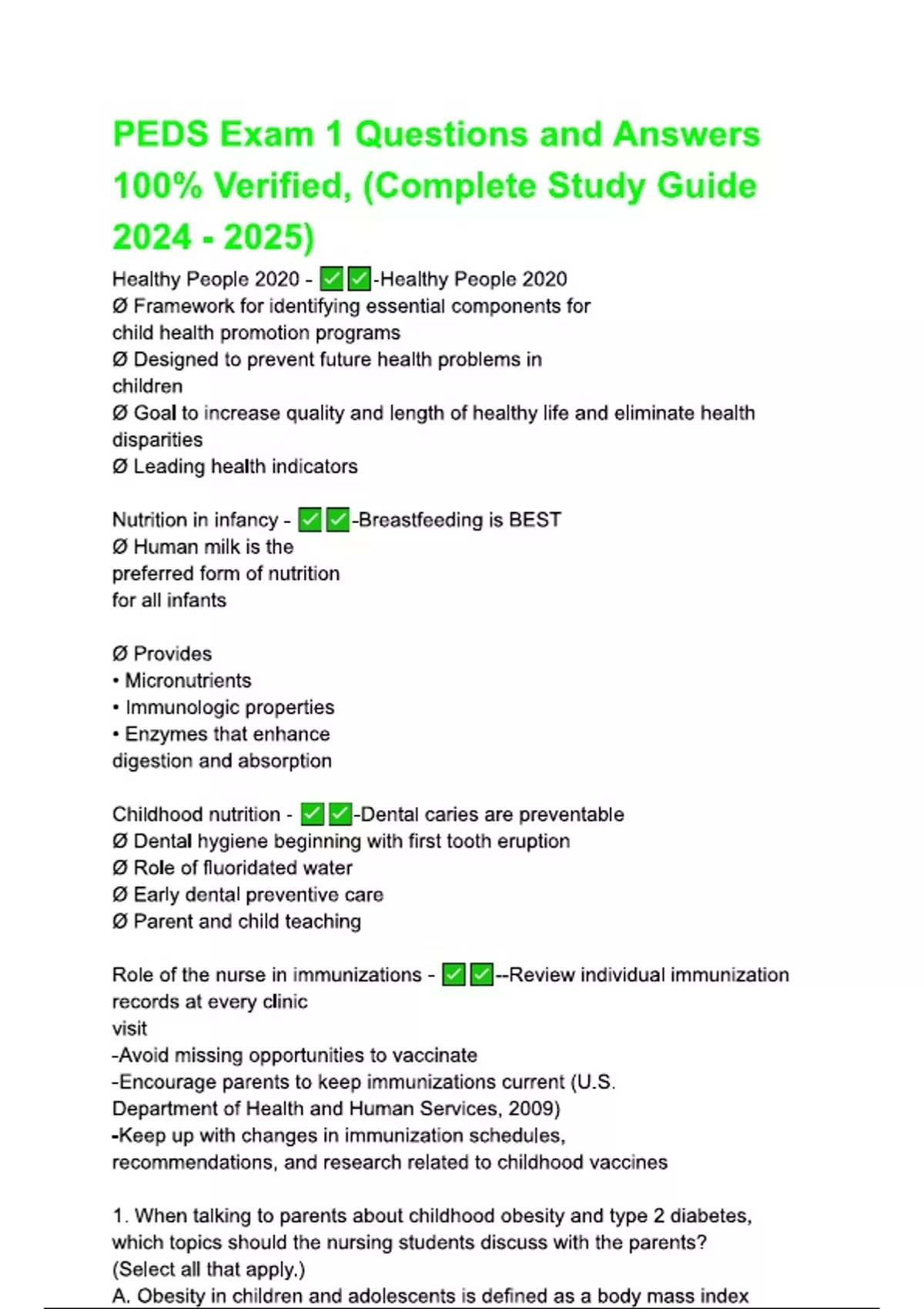 PEDS Exam 1 Questions and Answers ( Latest 2024 / 2025 Update) Actual Questions and Answers |100% Verified Correct | 100% satisfaction guarantee