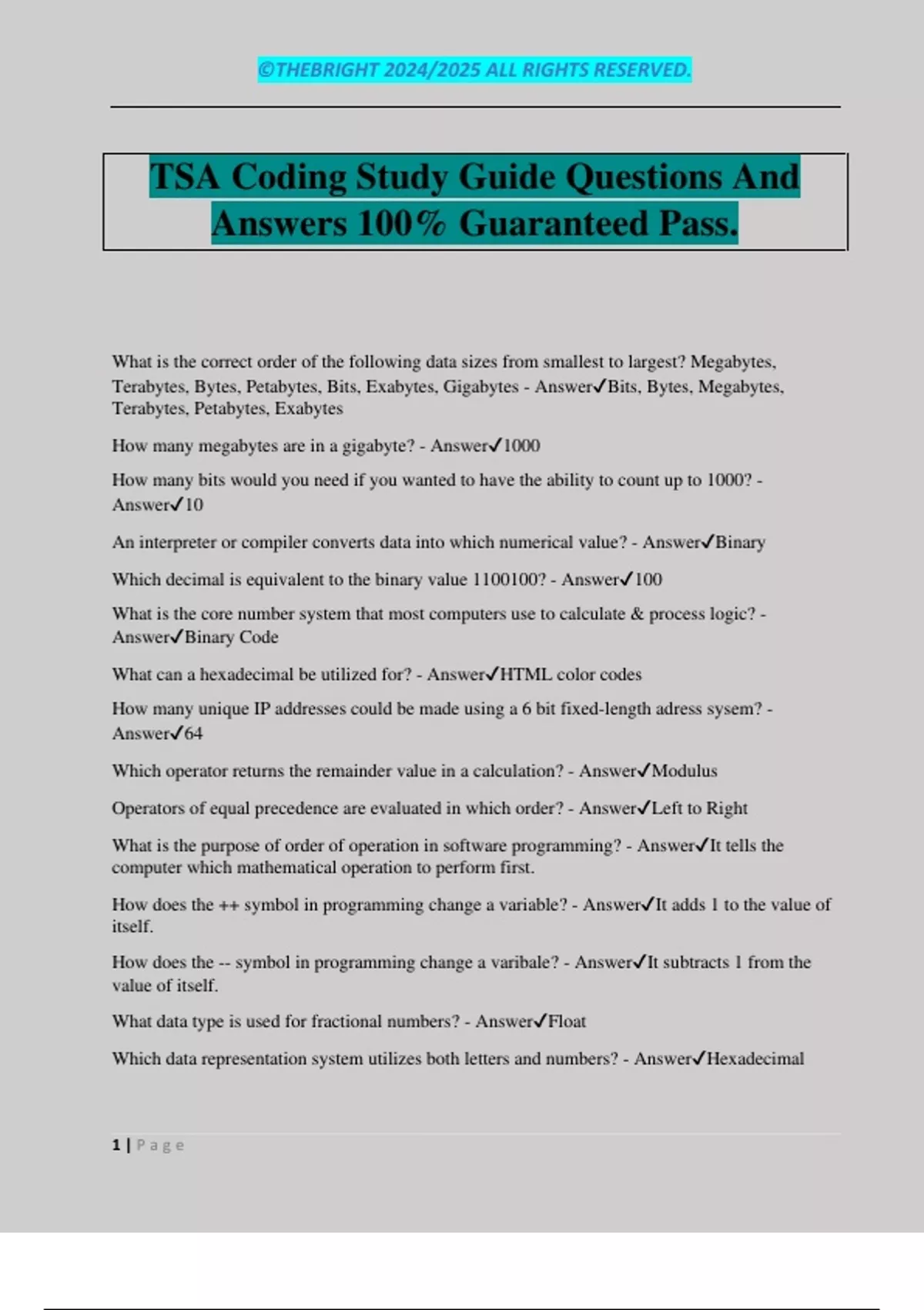 Terabytes, Bytes, Petabytes, Bits, Exabytes, Gigabytes - Answer✔Bits, Bytes, Megabytes,