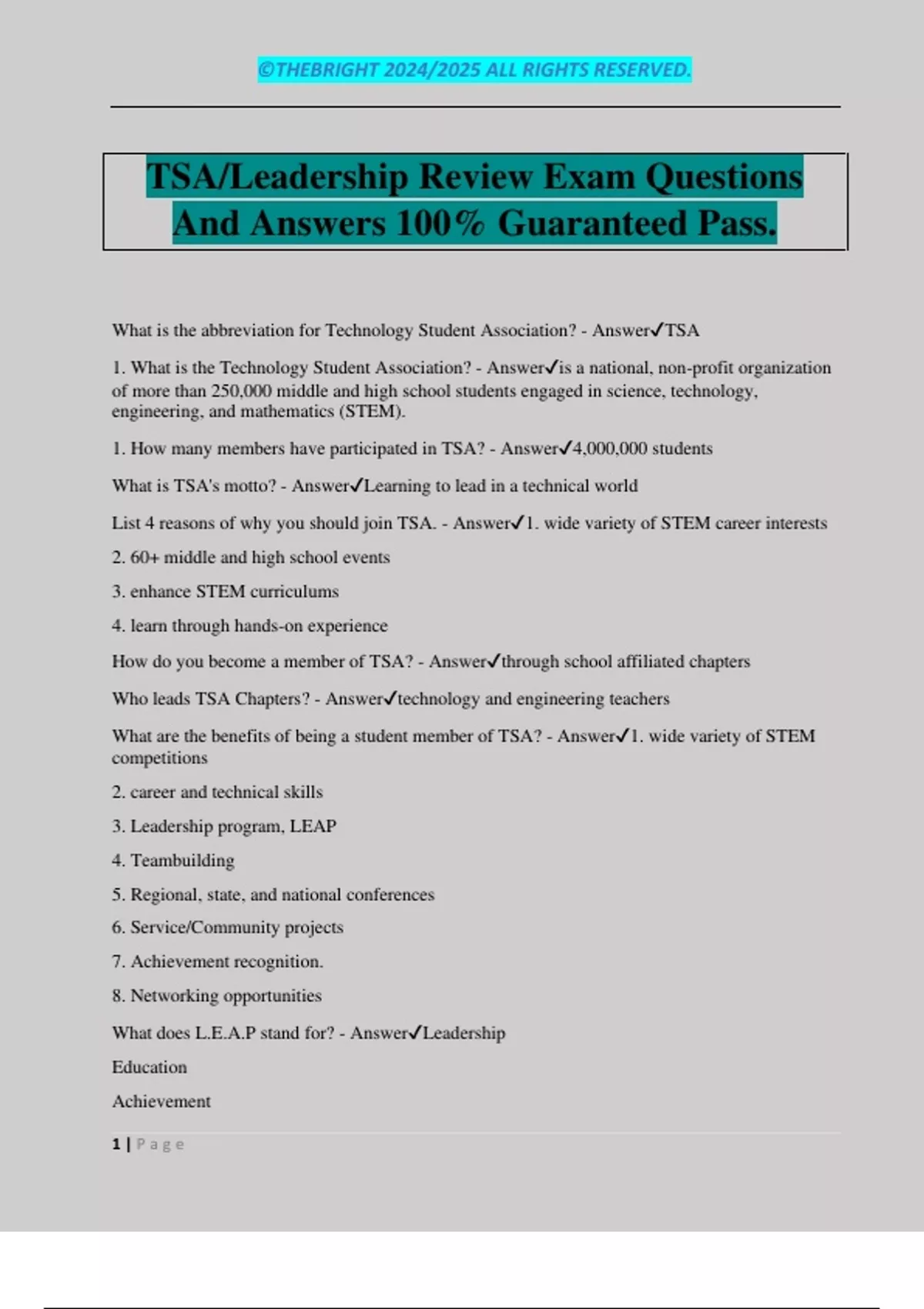 1. What is the Technology Student Association? - Answer✔is a national, non-profit organization