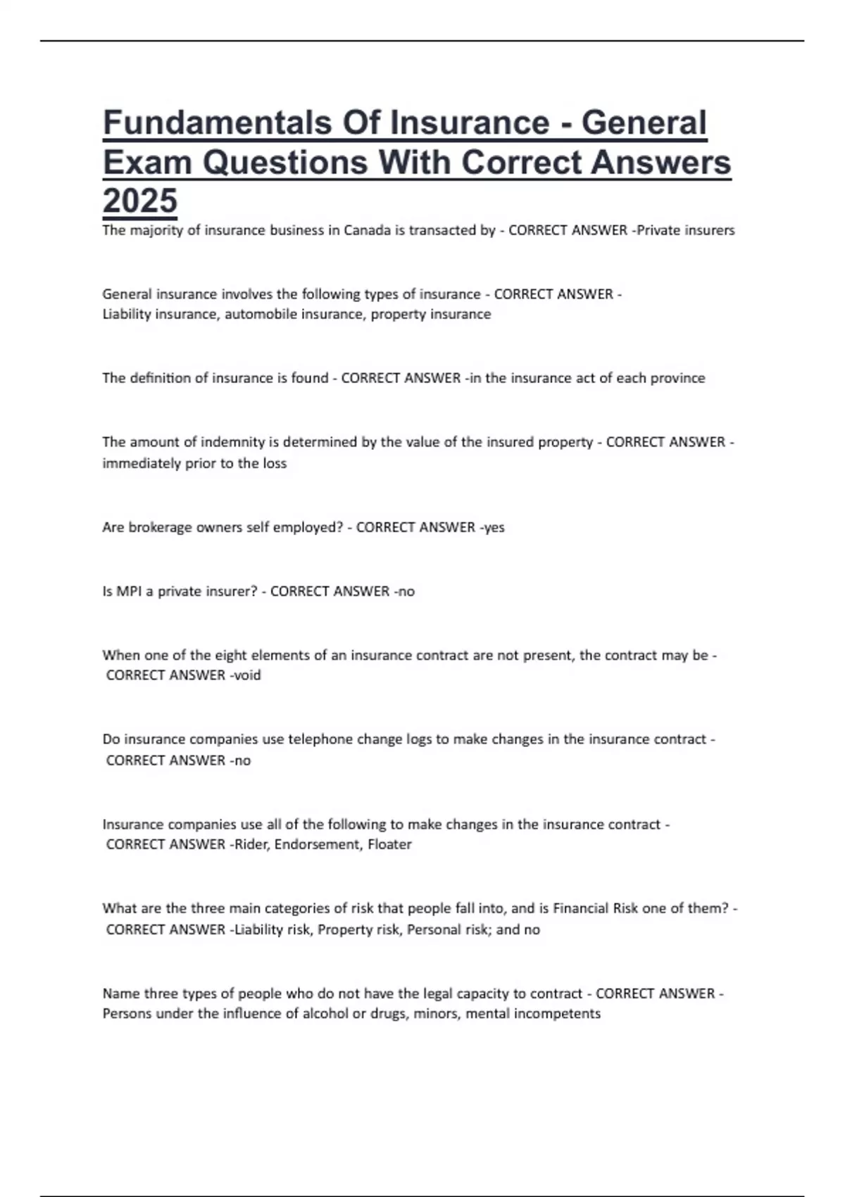 Fundamentals Of Insurance - General Exam Questions with Correct Answers 2025
