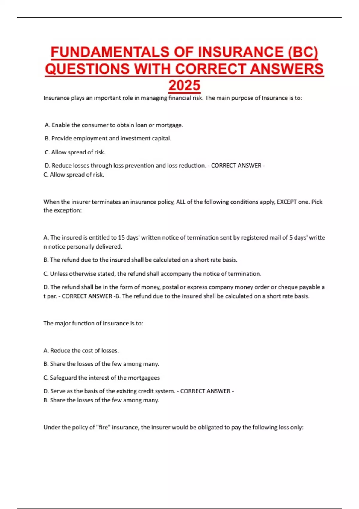 , D.FTheFindifferenceFtoFlossFofFtheFapplicantFforFinsurance.F-FCORRECTFANSWERF-