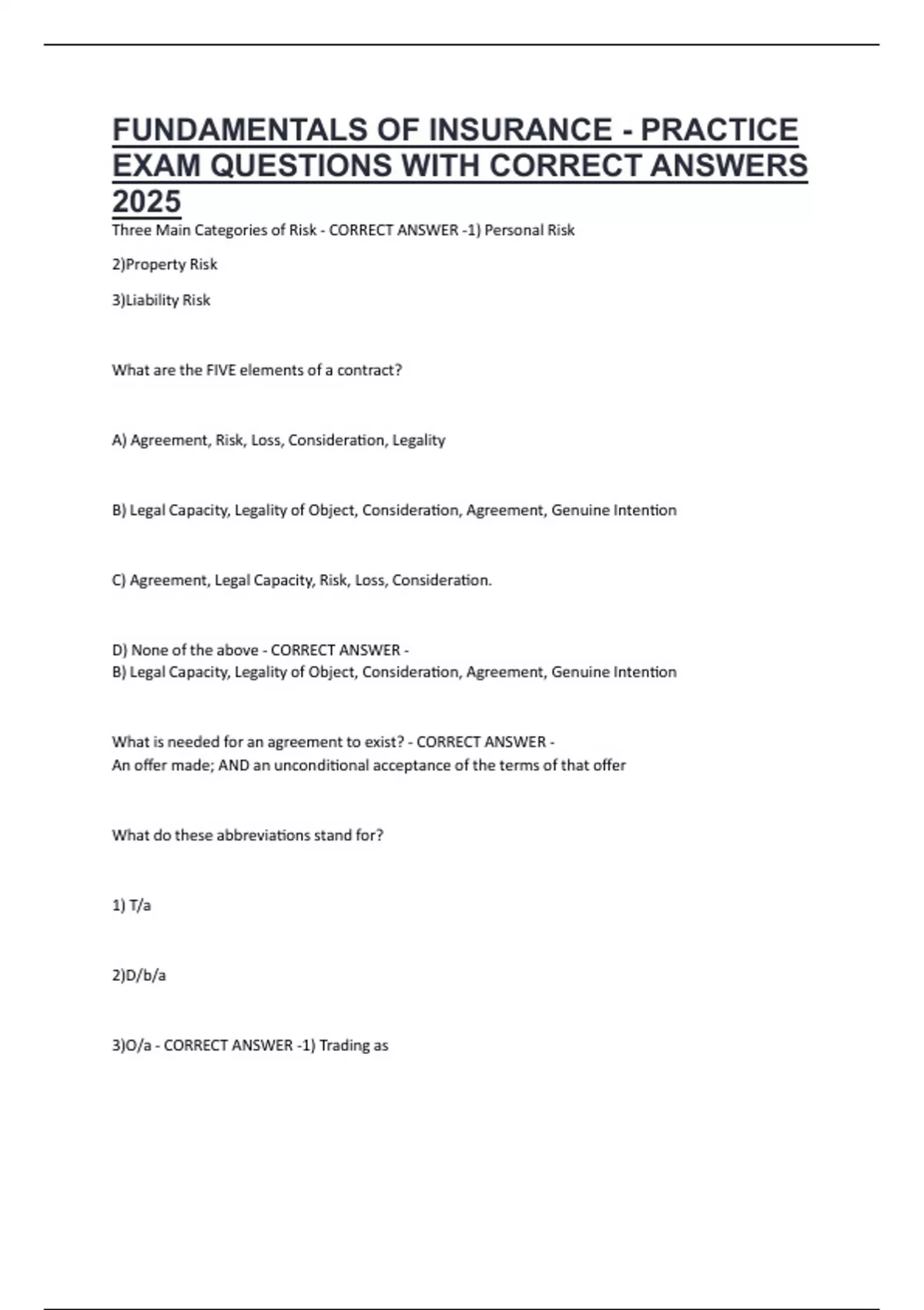 FUNDAMENTALS OF INSURANCE - PRACTICE