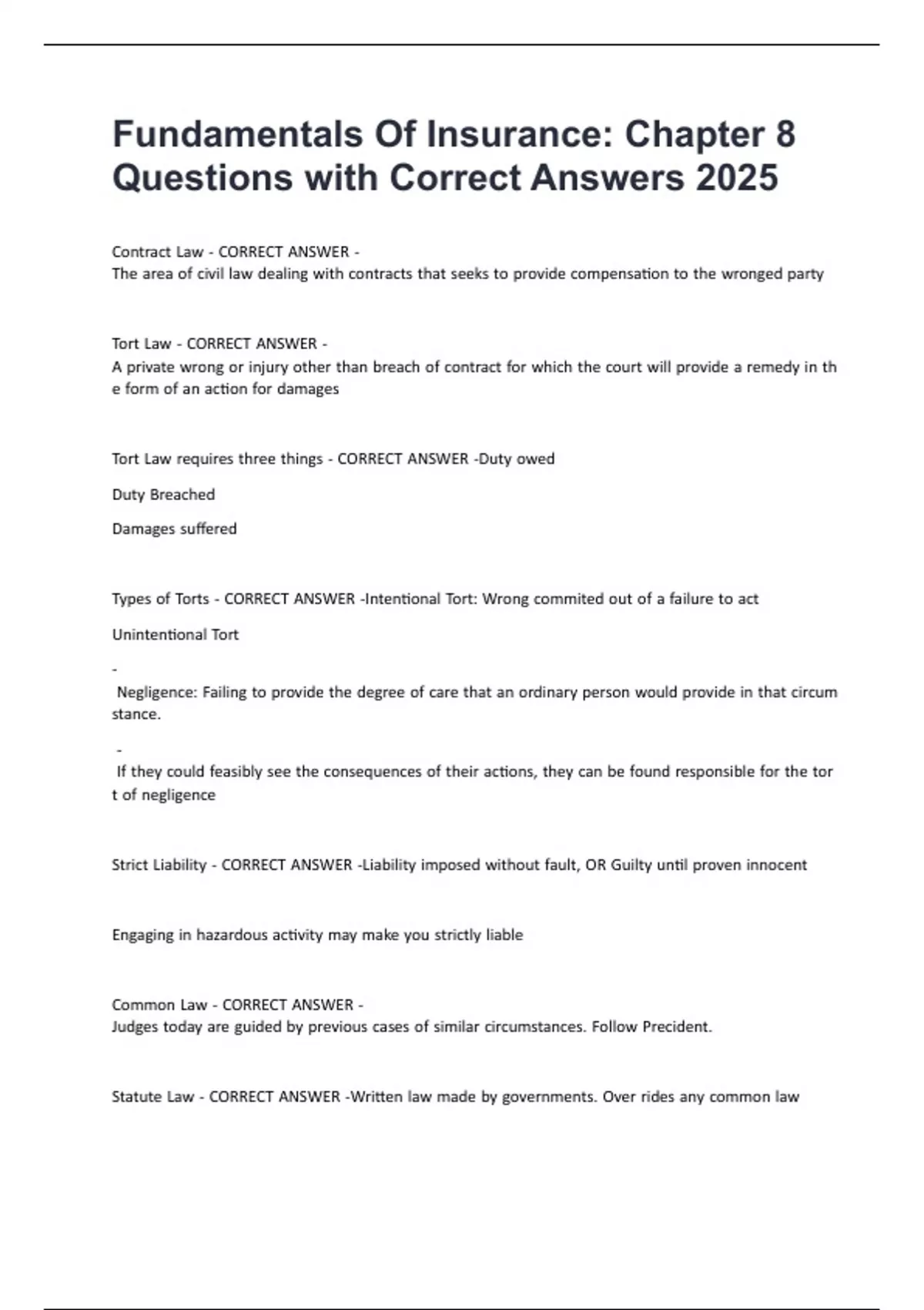 Fundamentals Of Insurance Chapter 8 Questions with Correct Answers 2025