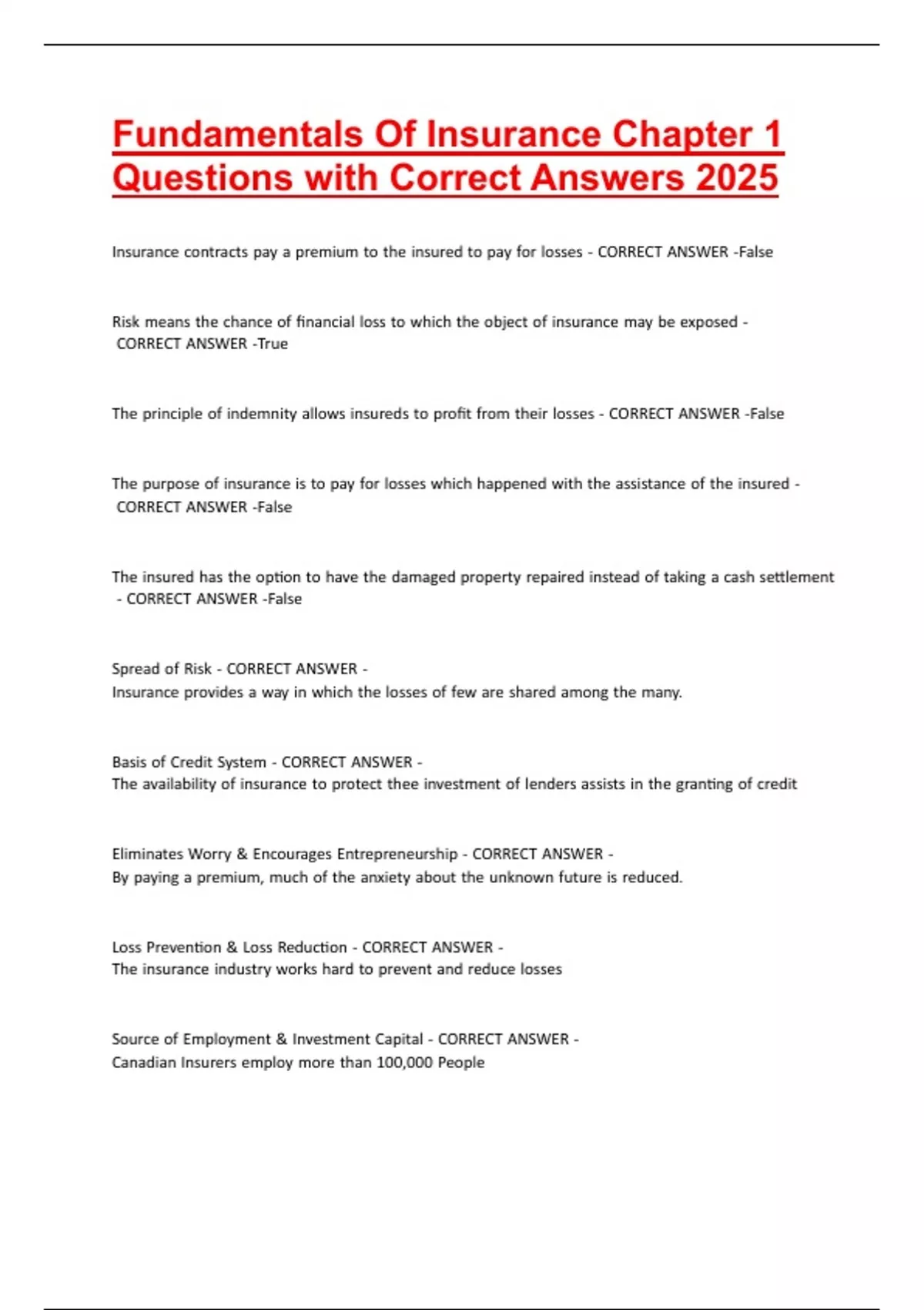 InsuranceGcontractsGpayGaGpremiumGtoGtheGinsuredGtoGpayGforGlossesG-GCORRECTGANSWERG-False