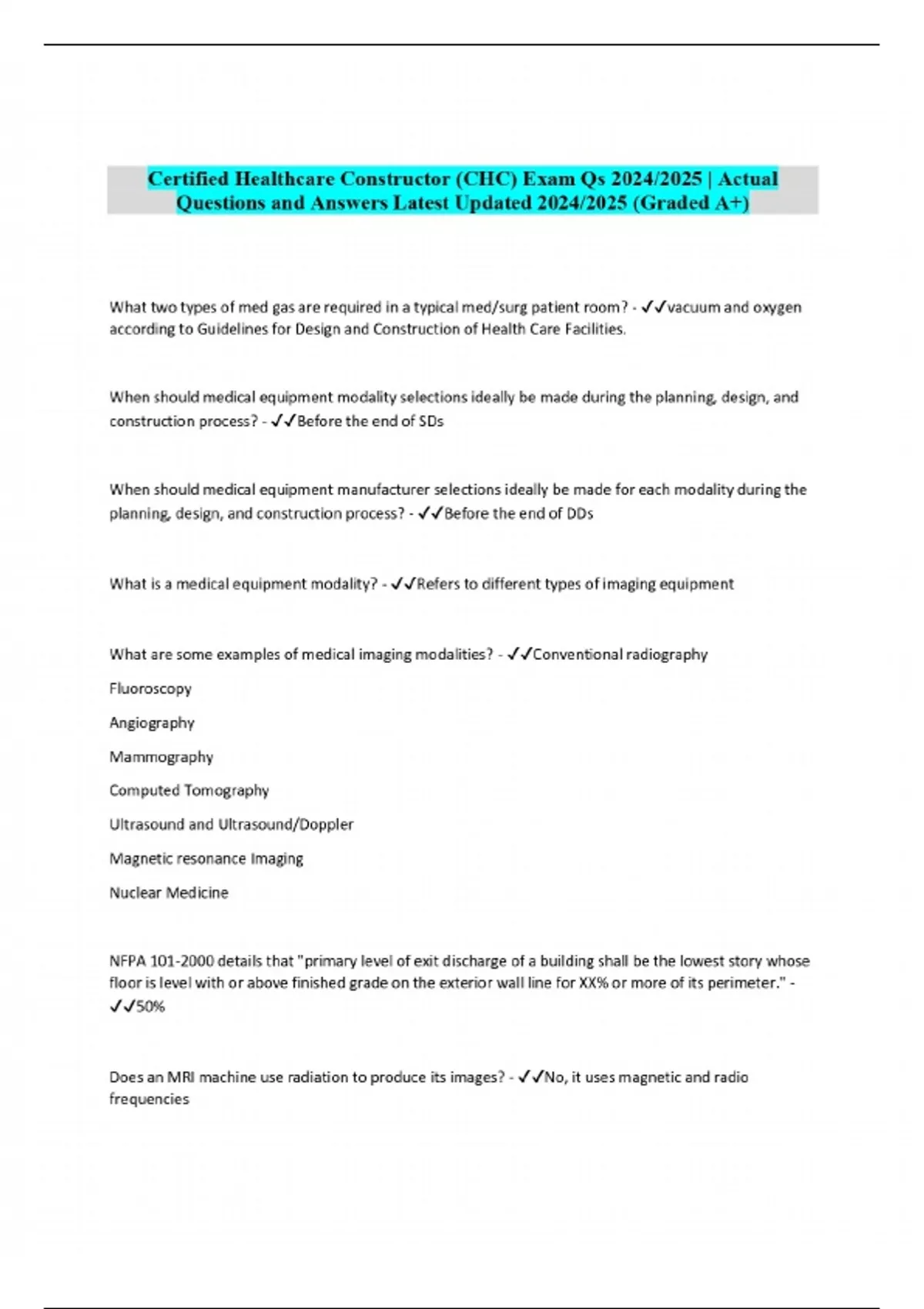 Certified Healthcare Constructor (CHC) Exam Qs 2024/2025 | Actual Questions and Answers