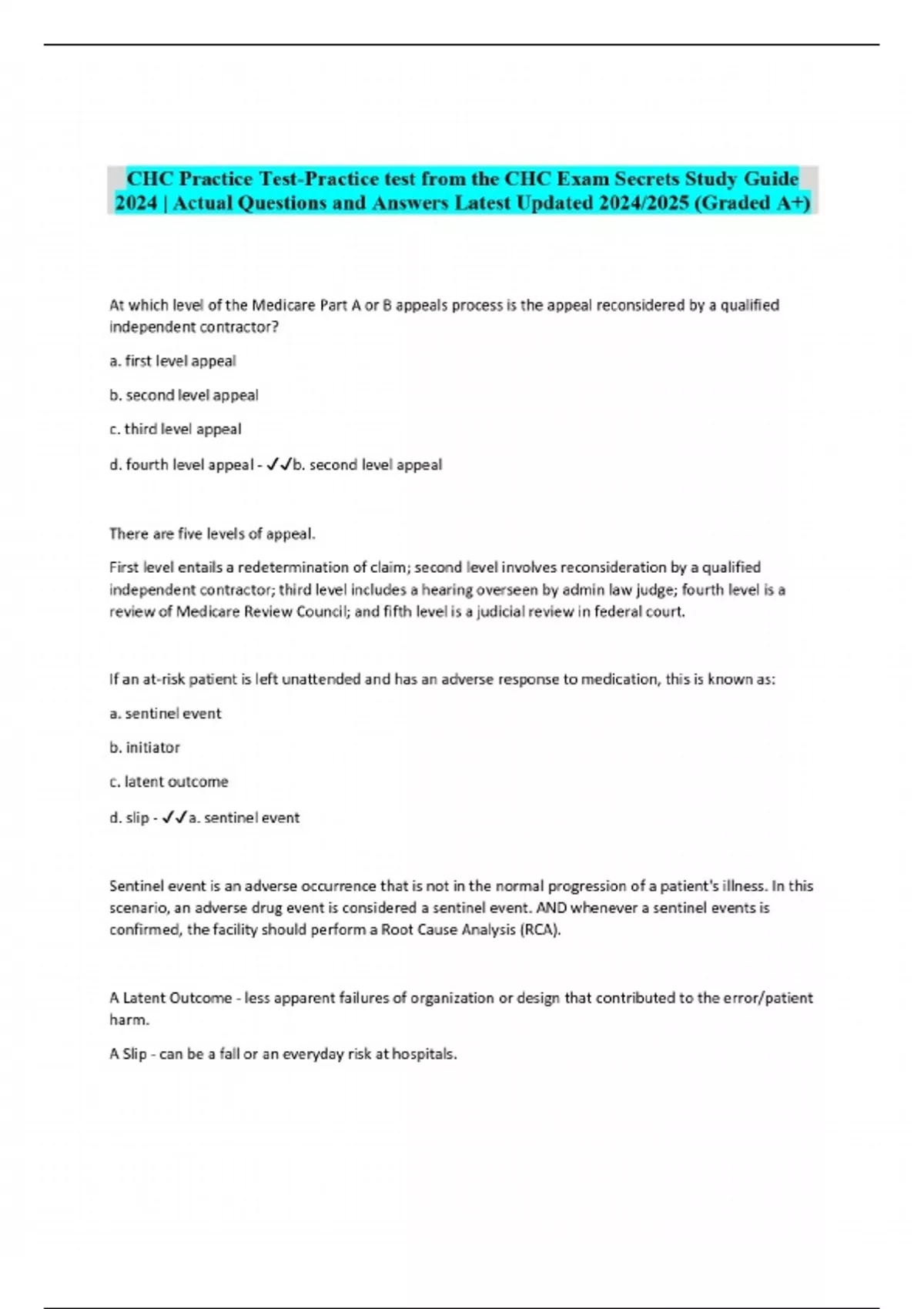 CHC Practice Test-Practice test from the CHC Exam Secrets Study Guide 2024 | Actual Questions and Answers