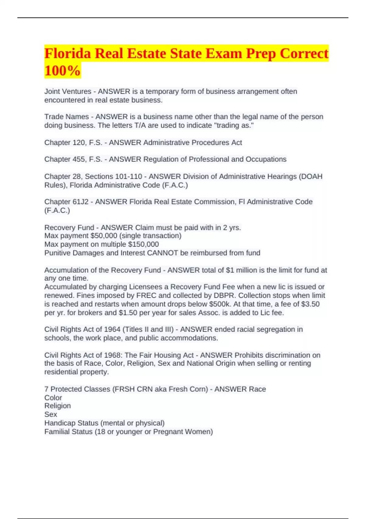 Joint Ventures - ANSWER is a temporary form of business arrangement often encountered in real estate business. Trade Names - ANSWER is a business name other than the legal name of the person doing business. The letters T/A are used to indicate "trading as." Chapter 120, F.S. - ANSWER Administrative Procedures Act