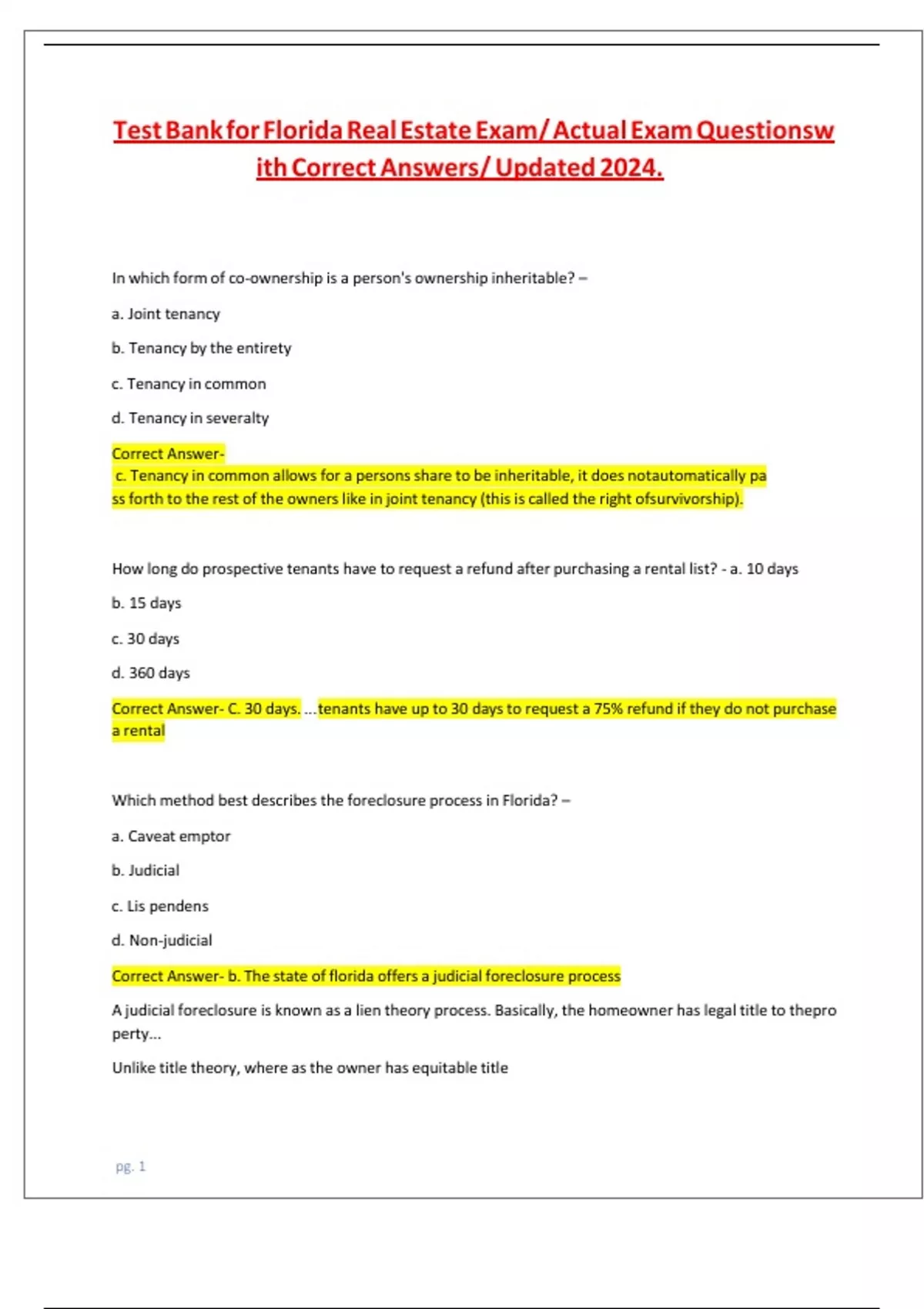 CorrecteAnswer-eb.eTheestateeofefloridaeofferseaejudicialeforeclosureeprocess