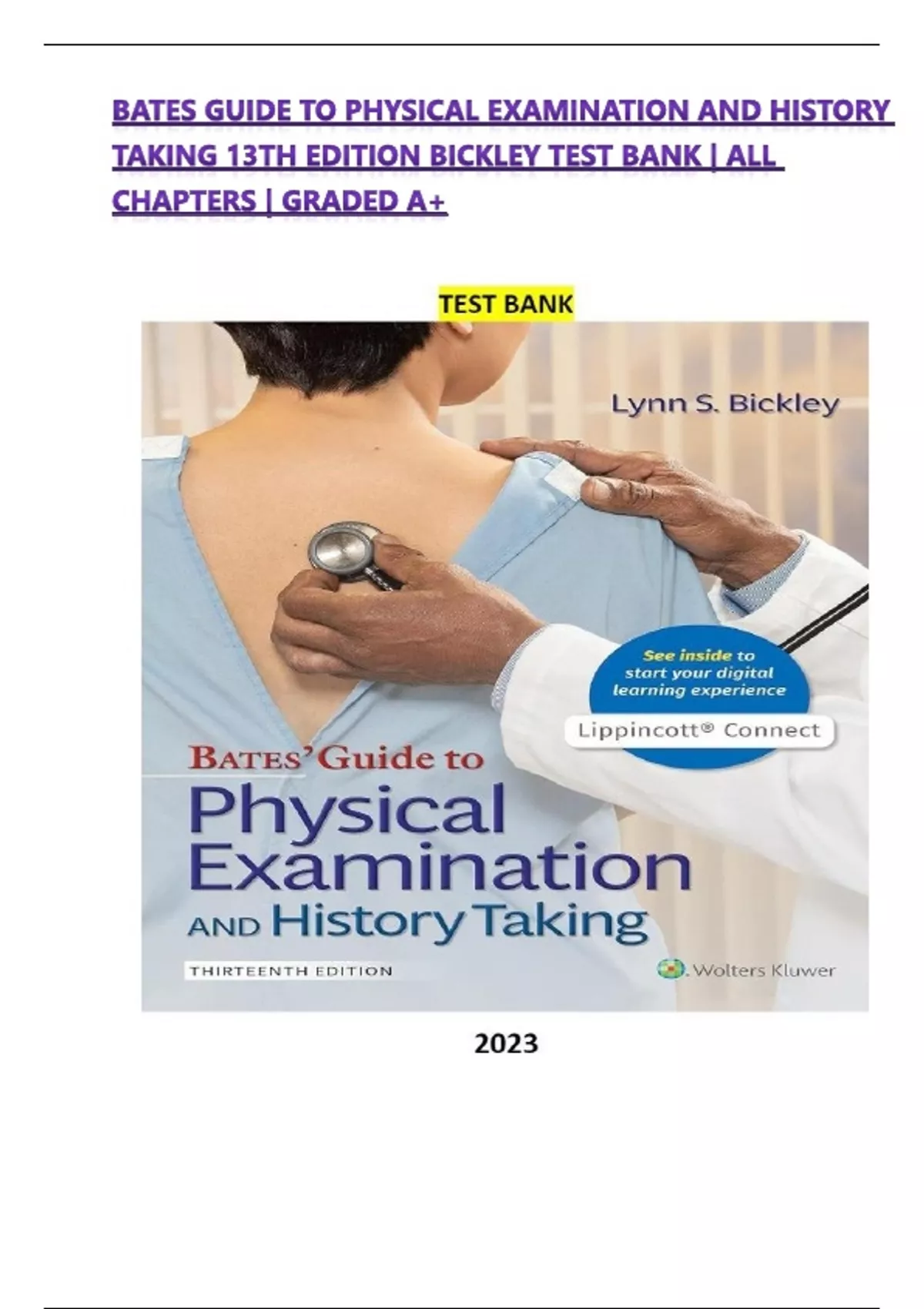 BATES GUIDE TO PHYSICAL EXAMINATION AND HISTORY TAKING 13TH EDITION BICKLEY TEST BANK | ALL CHAPTERS | GRADED A+