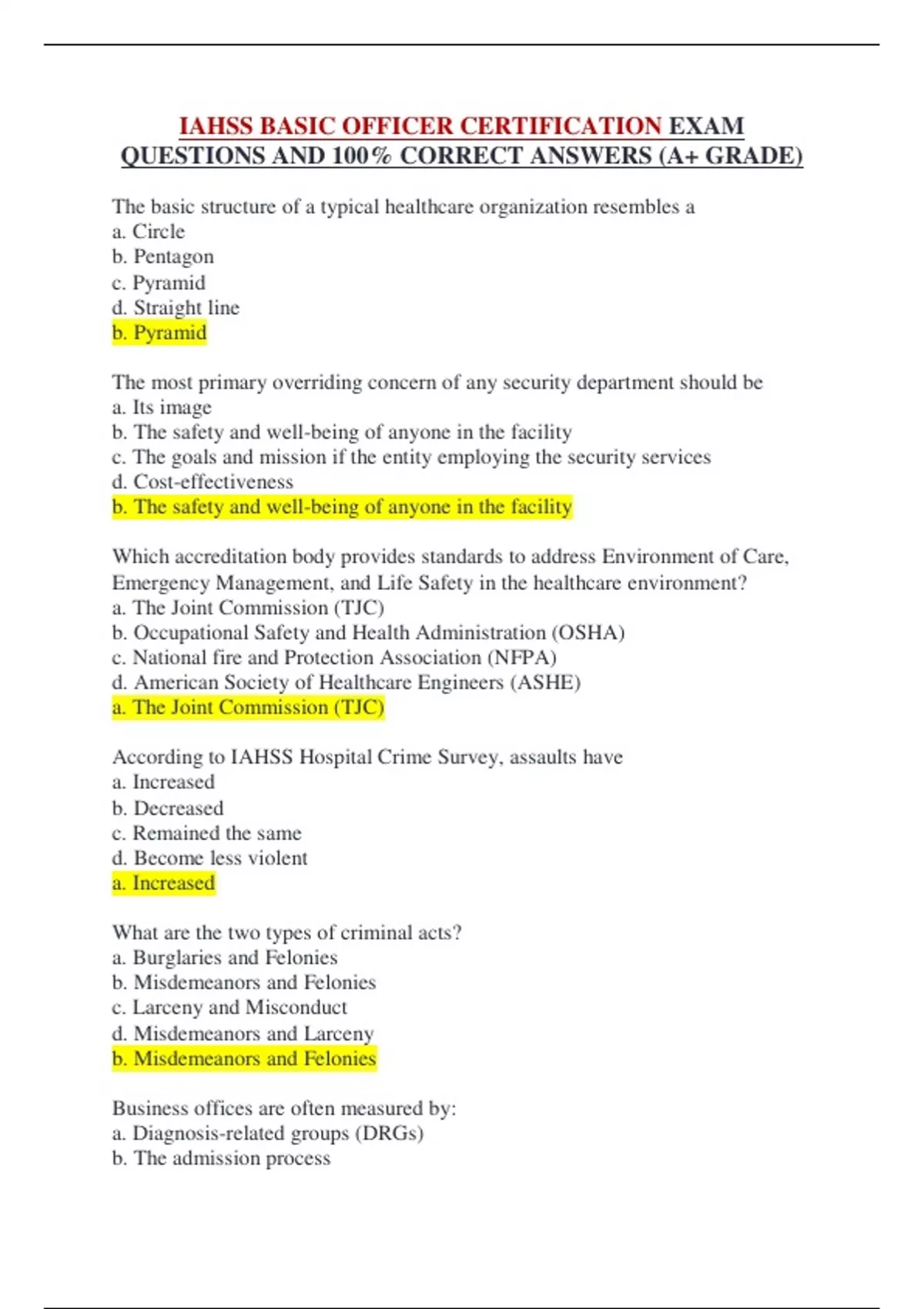 IAHSS BASIC OFFICER CERTIFICATION EXAM