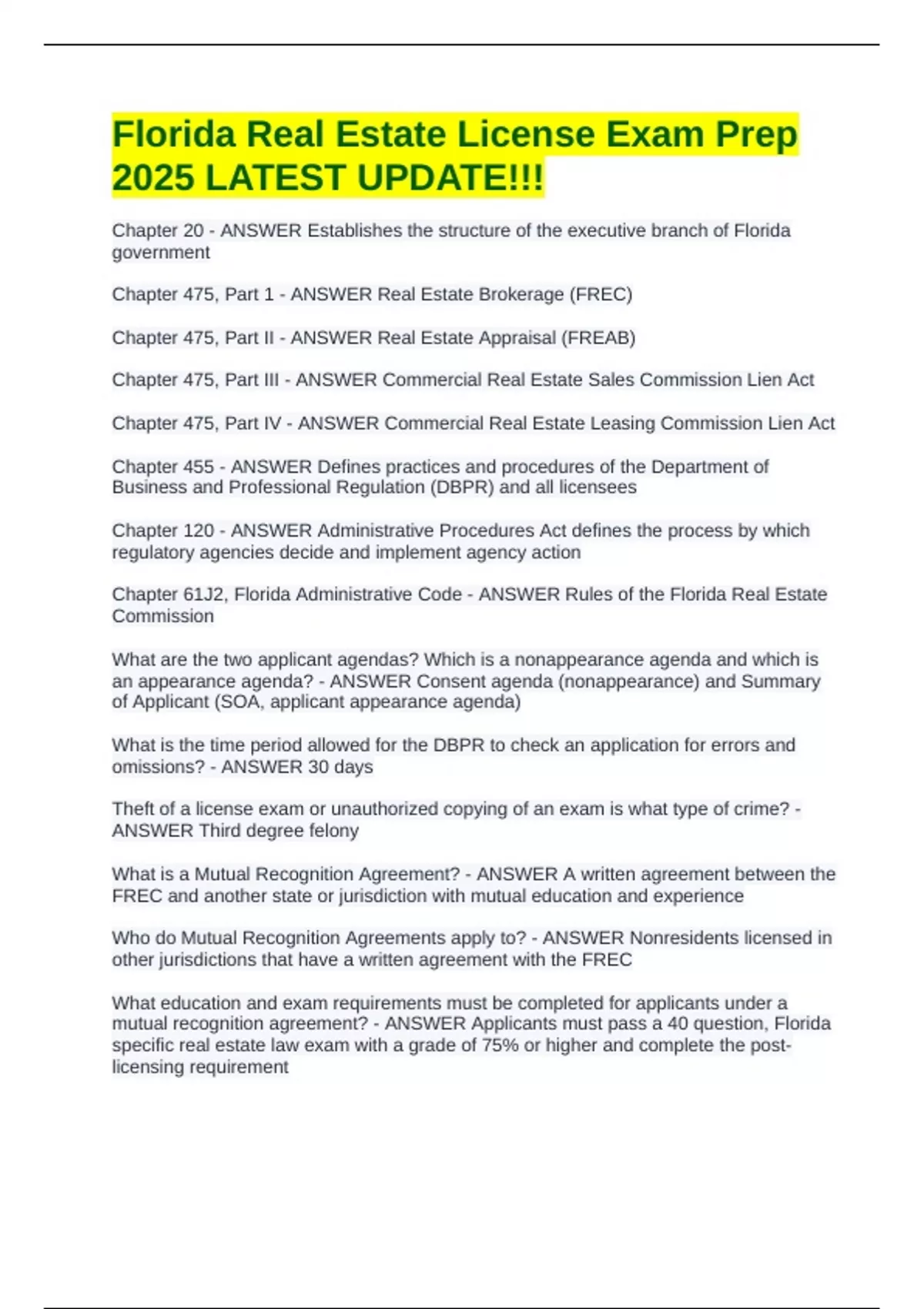 Chapter 475, Part II - ANSWER Real Estate Appraisal (FREAB)