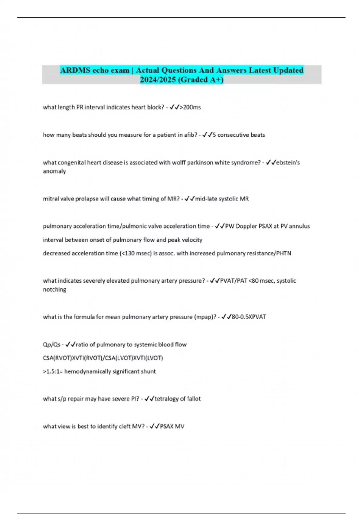 ARDMS echo exam | Actual Questions And Answers