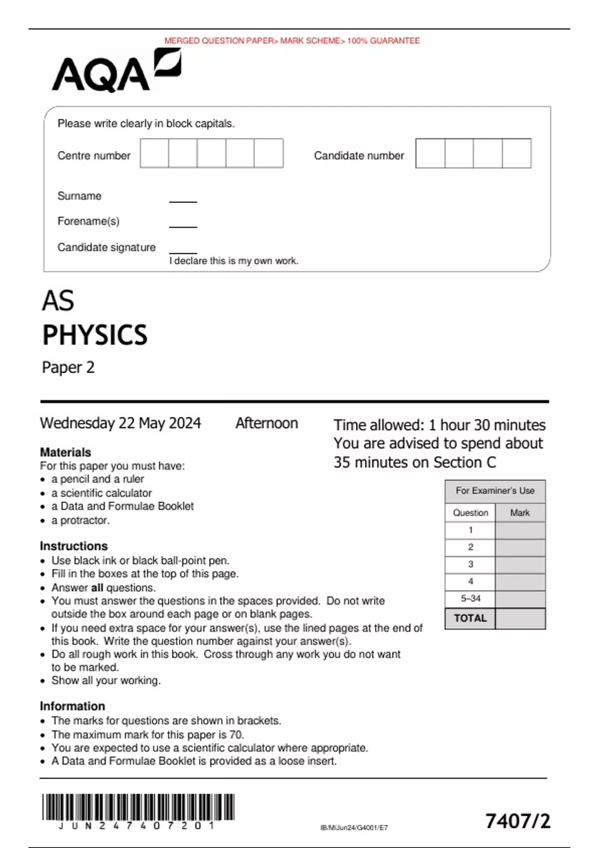 Wednesday 22 May 2024 Afternoon Time allowed: 1 hour 30 minutes
