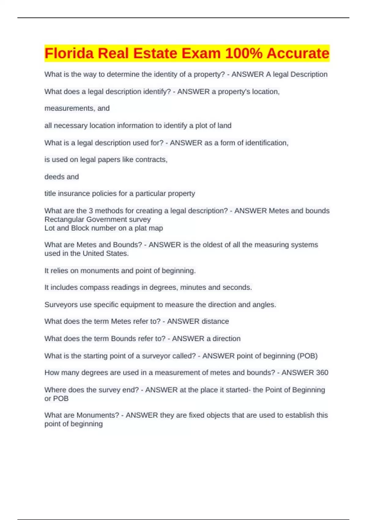 What is the way to determine the identity of a property? - ANSWER A legal Description