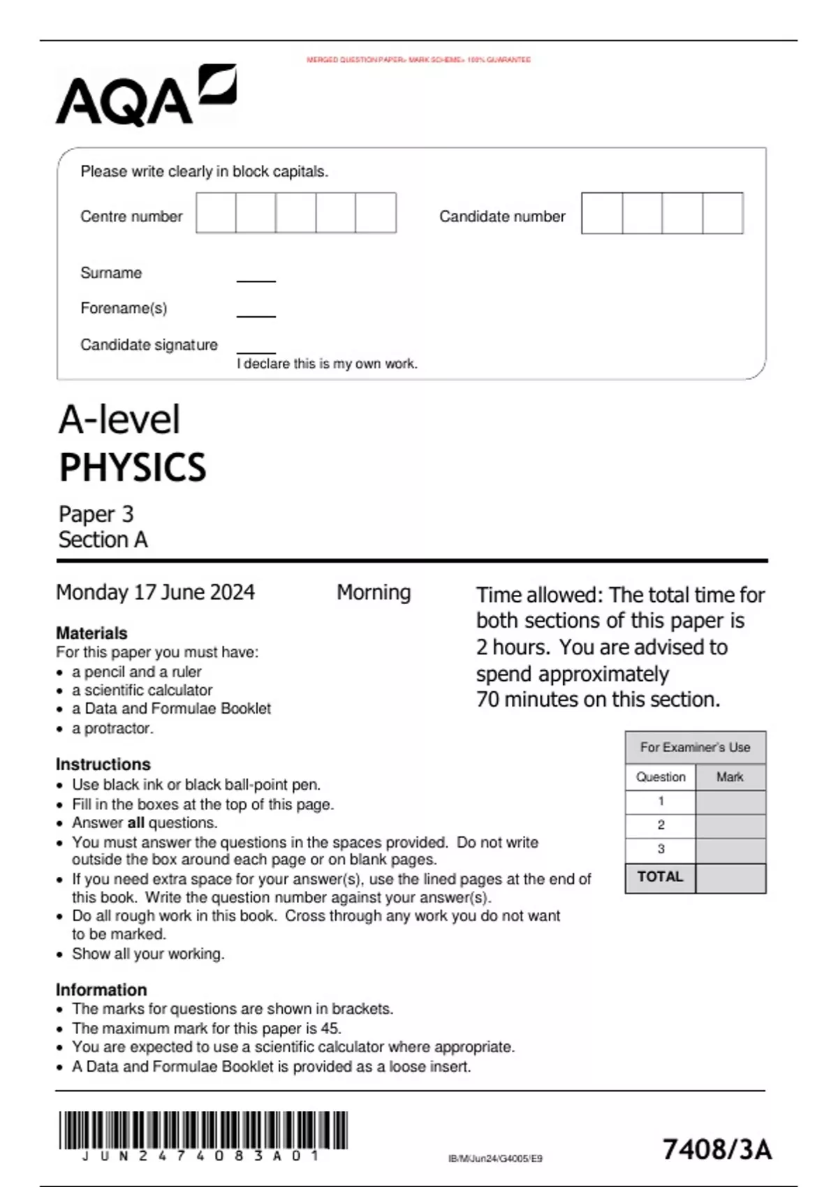 Monday 17 June 2024 Morning Time allowed: The total time for