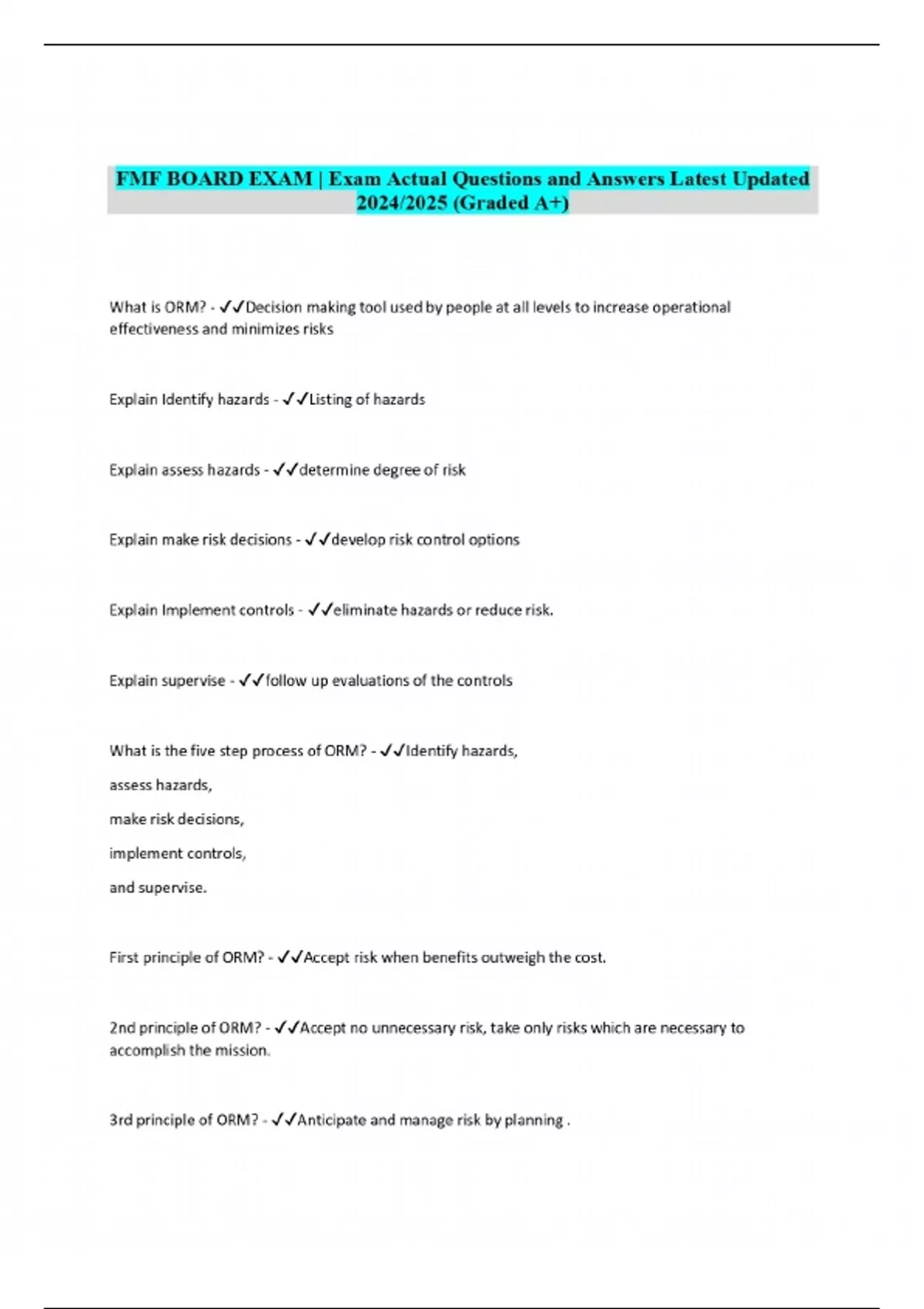 fmf board exam exam actual questions and answers