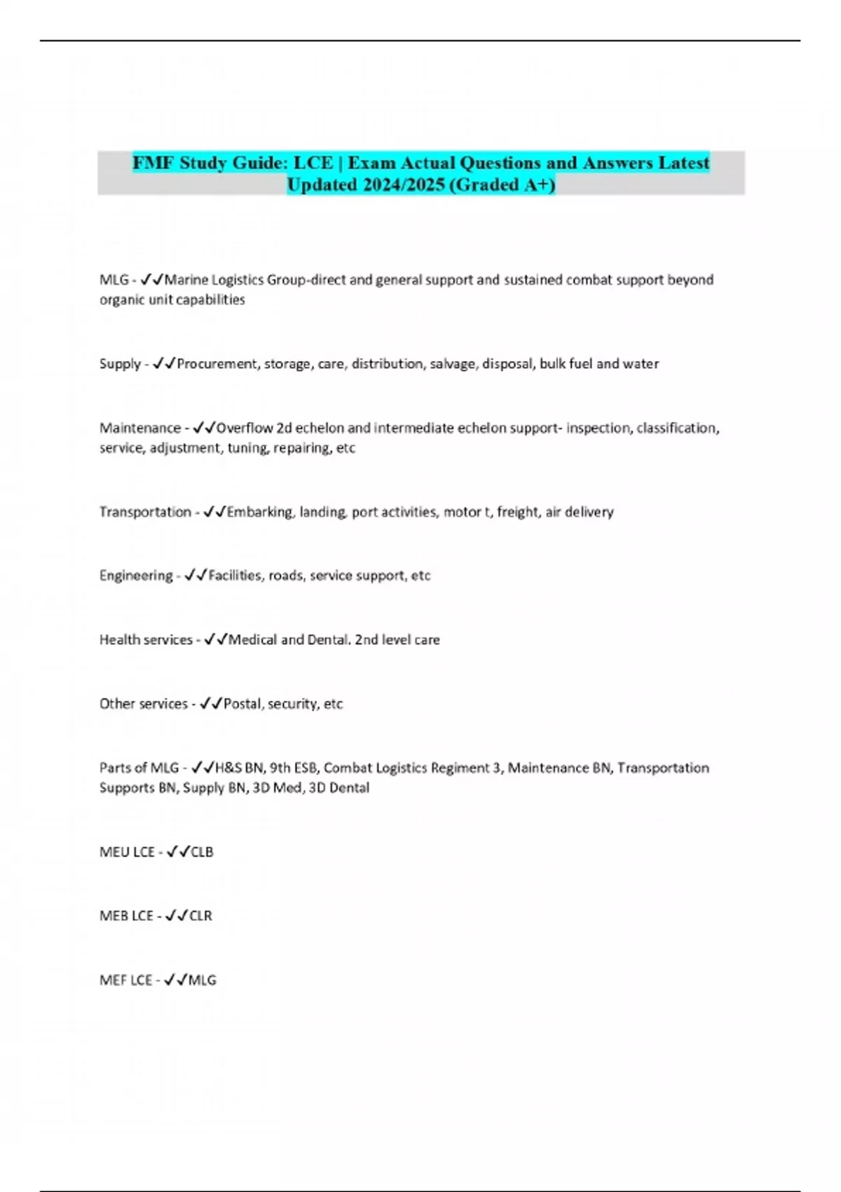 FMF Study Guide: LCE | Exam Actual Questions and Answers