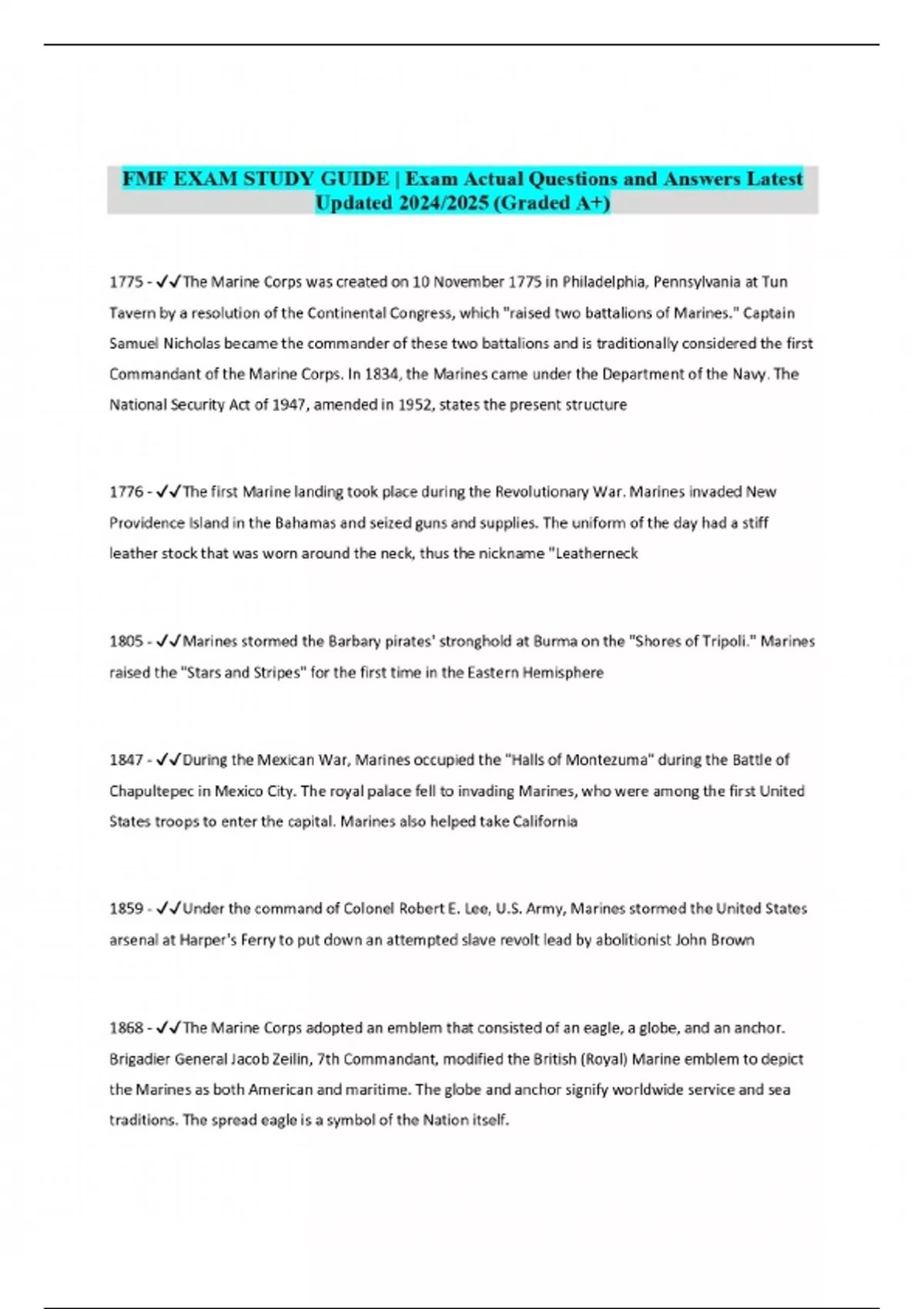 FMF EXAM STUDY GUIDE | Exam Actual Questions and Answers