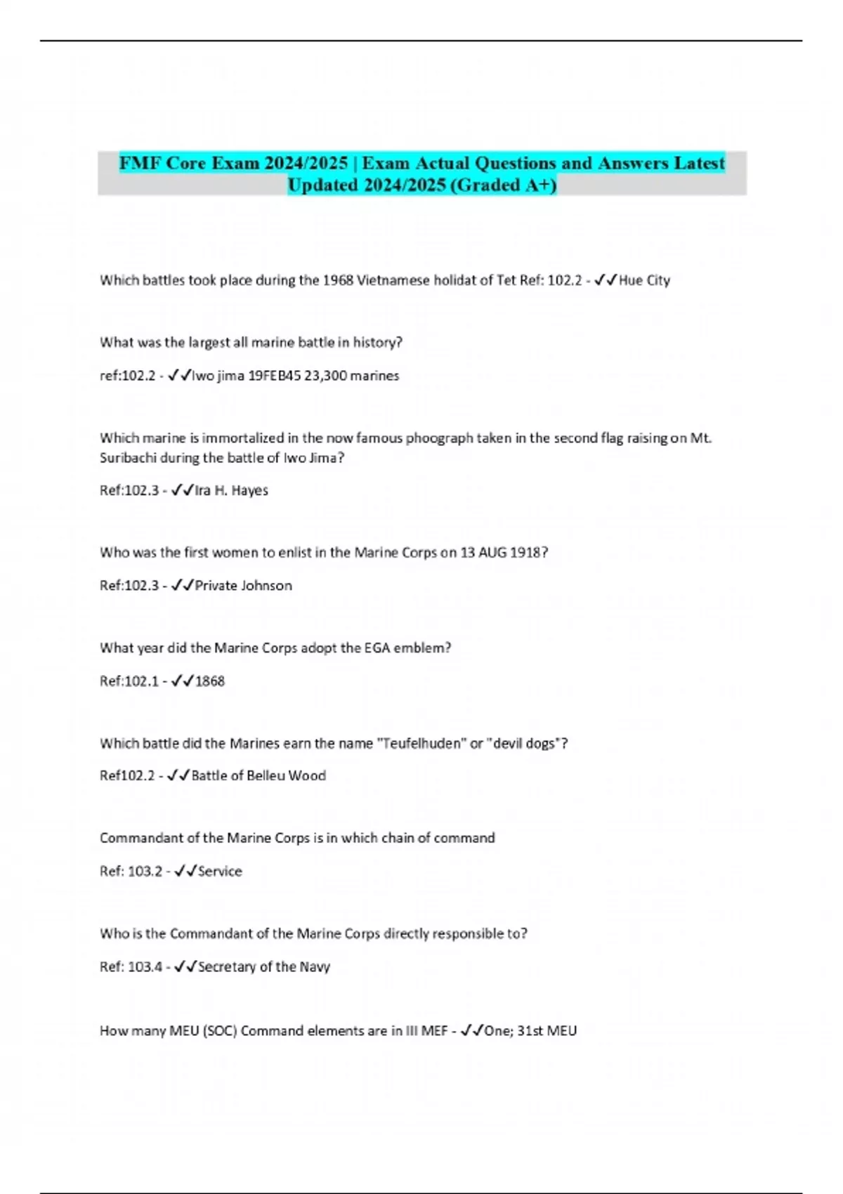 FMF Core Exam 2024/2025 | Exam Actual Questions and Answers