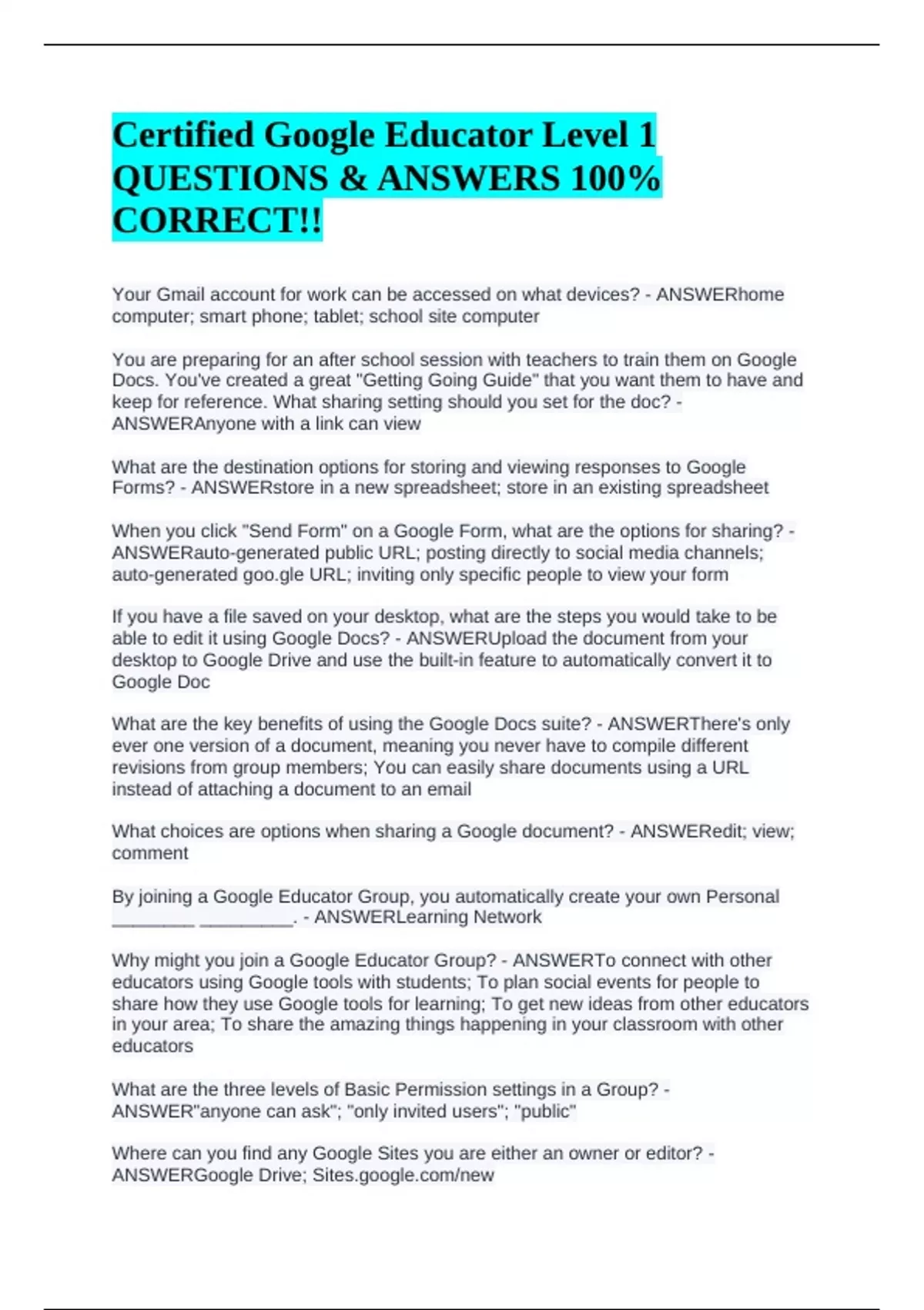 Certified Google Educator Level 1 QUESTIONS & ANSWERS 100% CORRECT!!