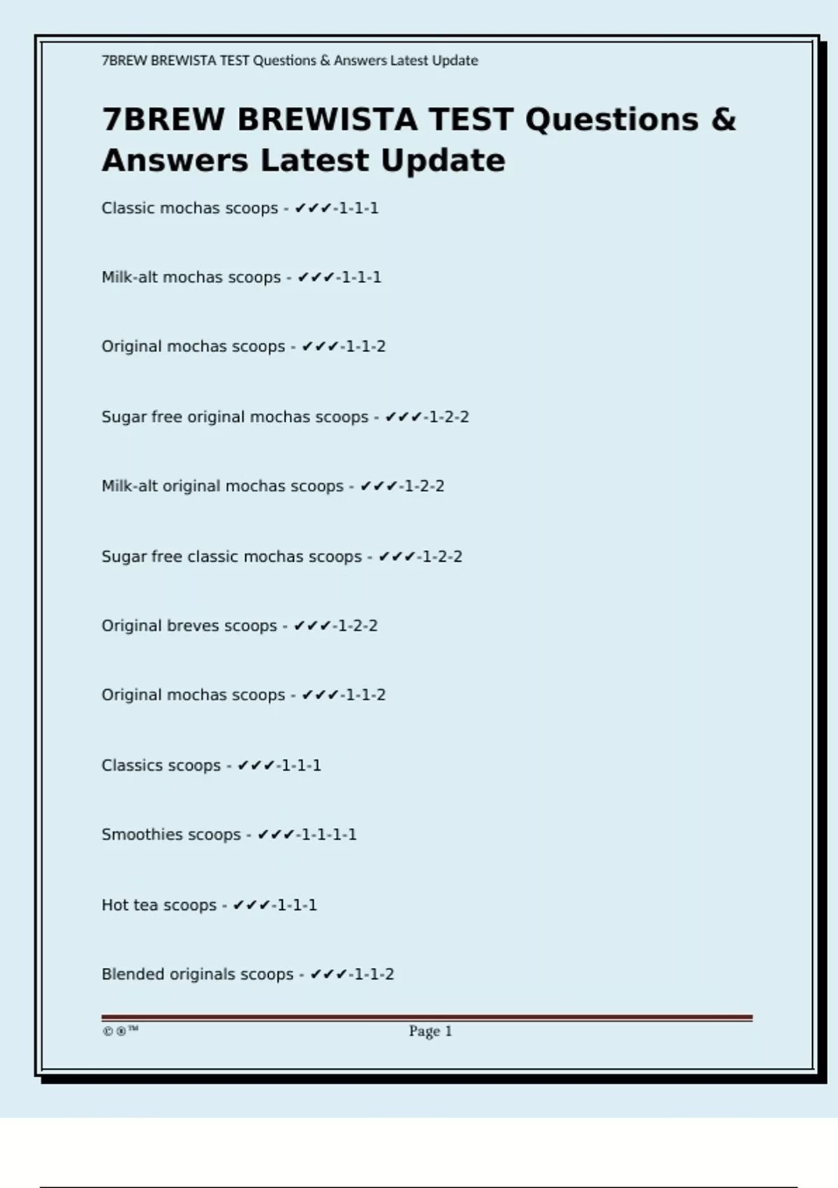 , 7BREW BREWISTA TEST Questions & Answers Latest Update
